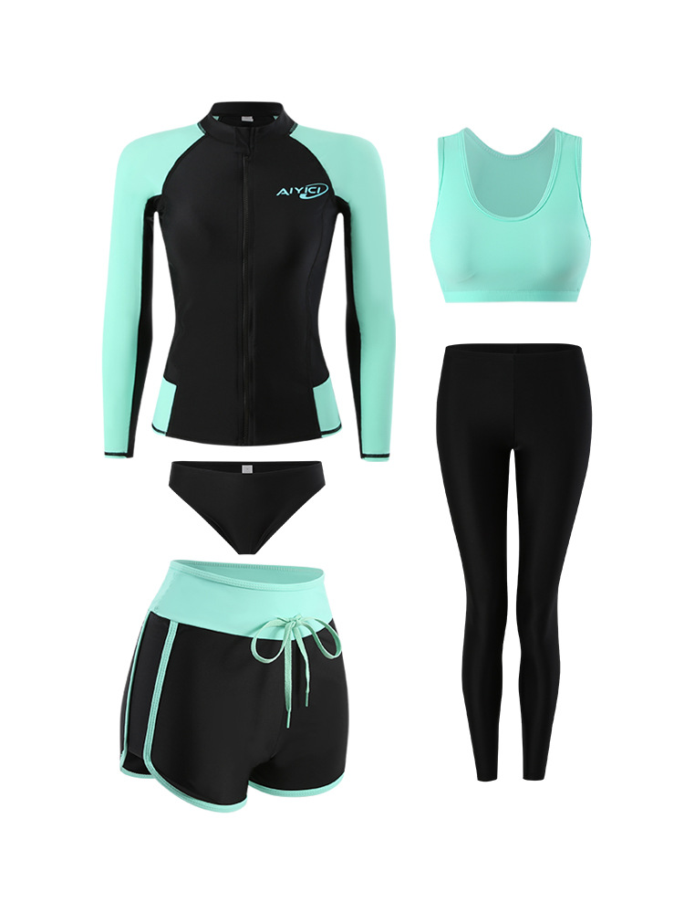 • 2168 검은 색과 녹색 스티칭 지퍼 여성용 5 피스 세트