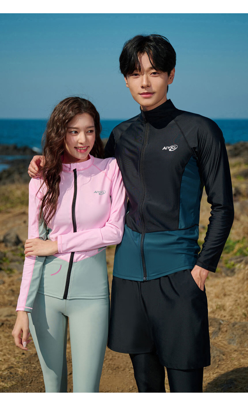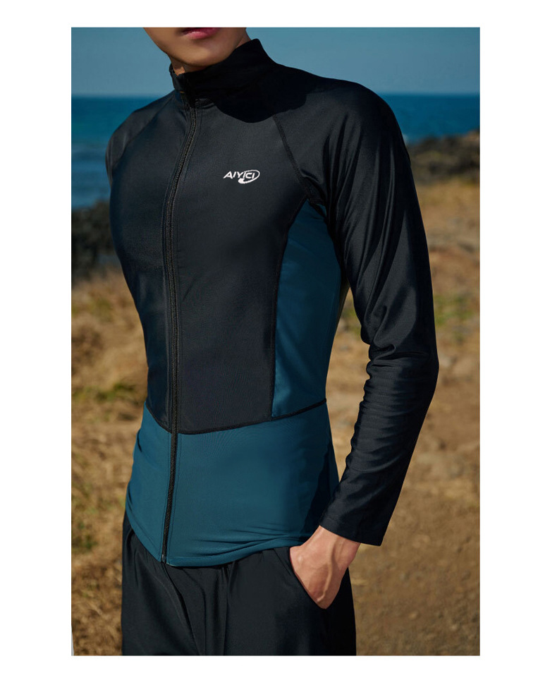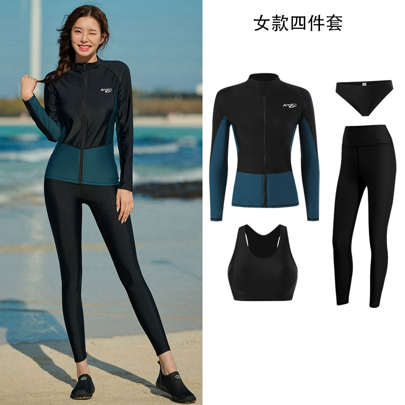 높은 탄성 나일론 한국 다이빙 세트 여성 스플릿 태양 방지 긴팔 수영복 남성 슬리밍 퀵 드라이 커플의 스노클링 서핑 수트