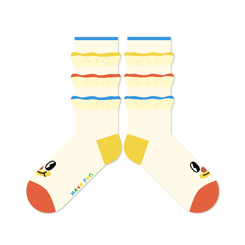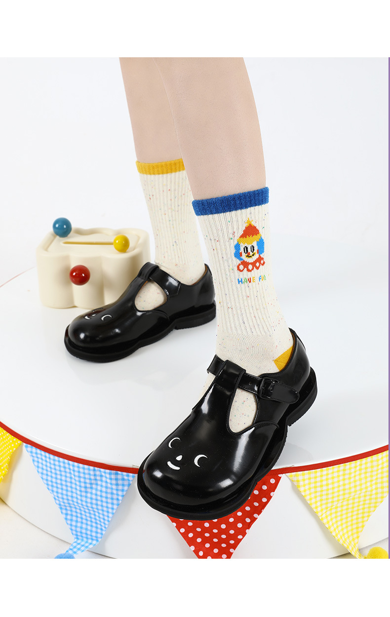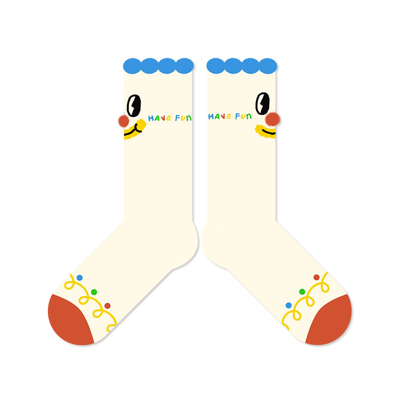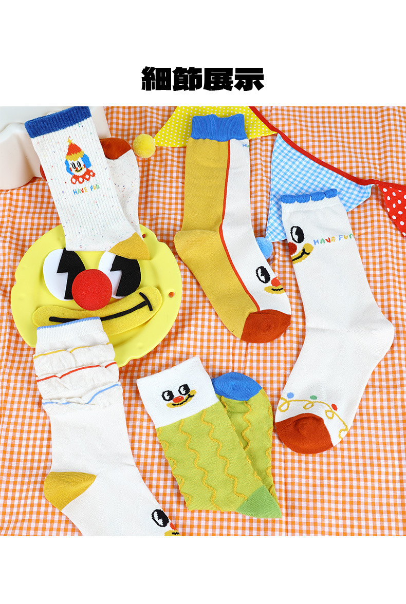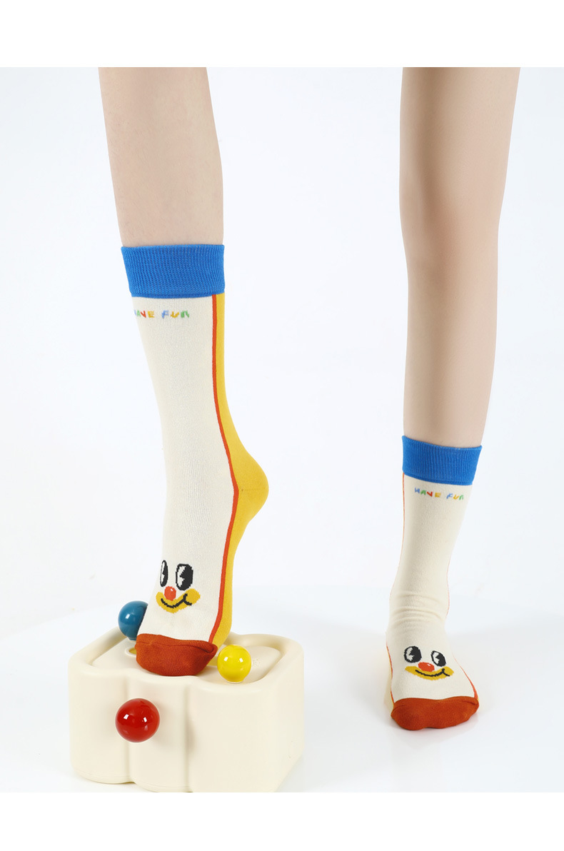 봄과 가을 귀여운 만화 광대면 양말 여성 원래 성격 커플 스타일 중간 튜브 미끄럼 방지 여성 홈 바닥 양말스토어 가기