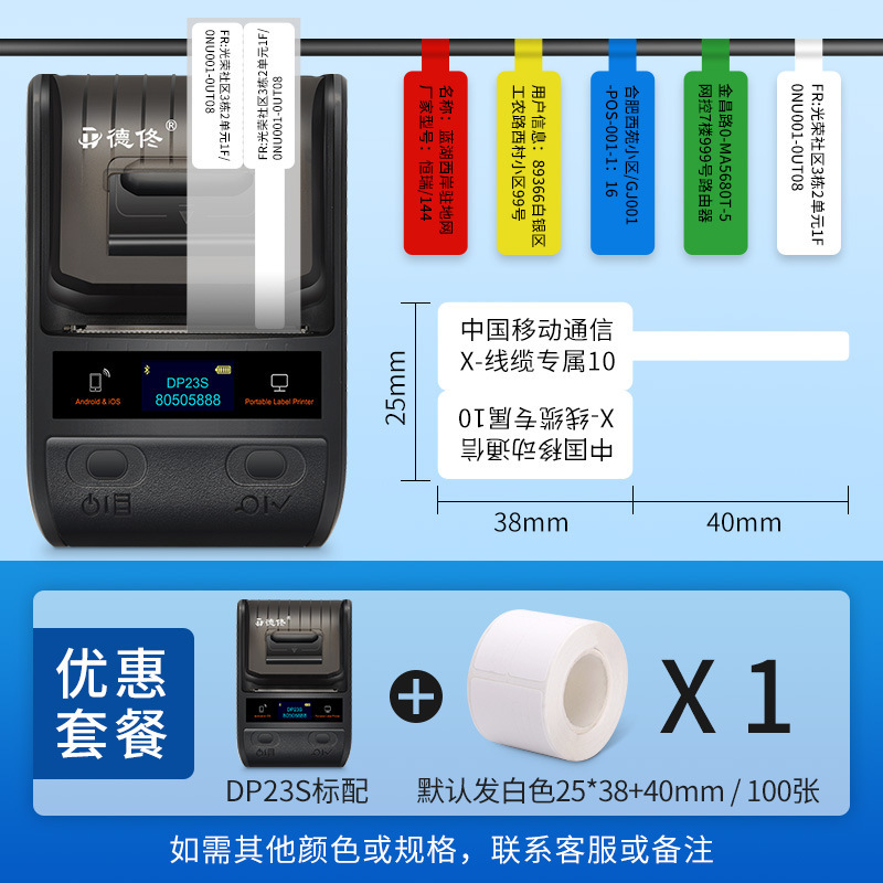Deyi DP23S 라벨 기계 휴대용 휴대용 열 휴대 전화 블루투스 통신 케이블 데이터 센터 접착 스티커 바코드스토어 가기