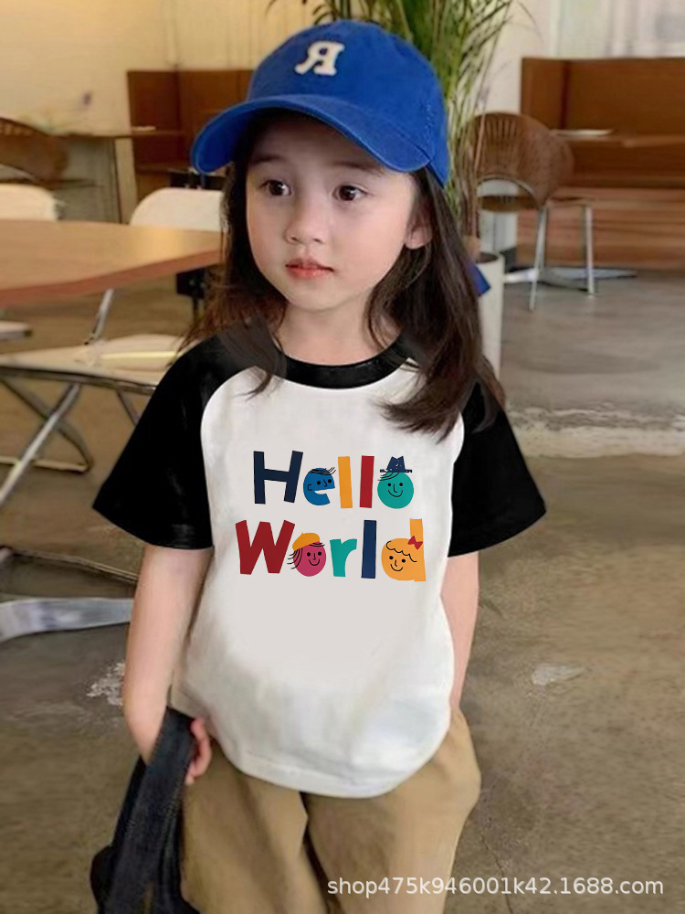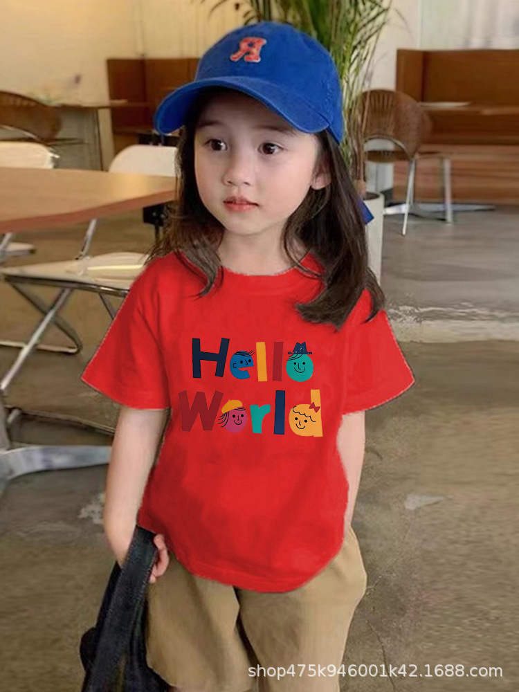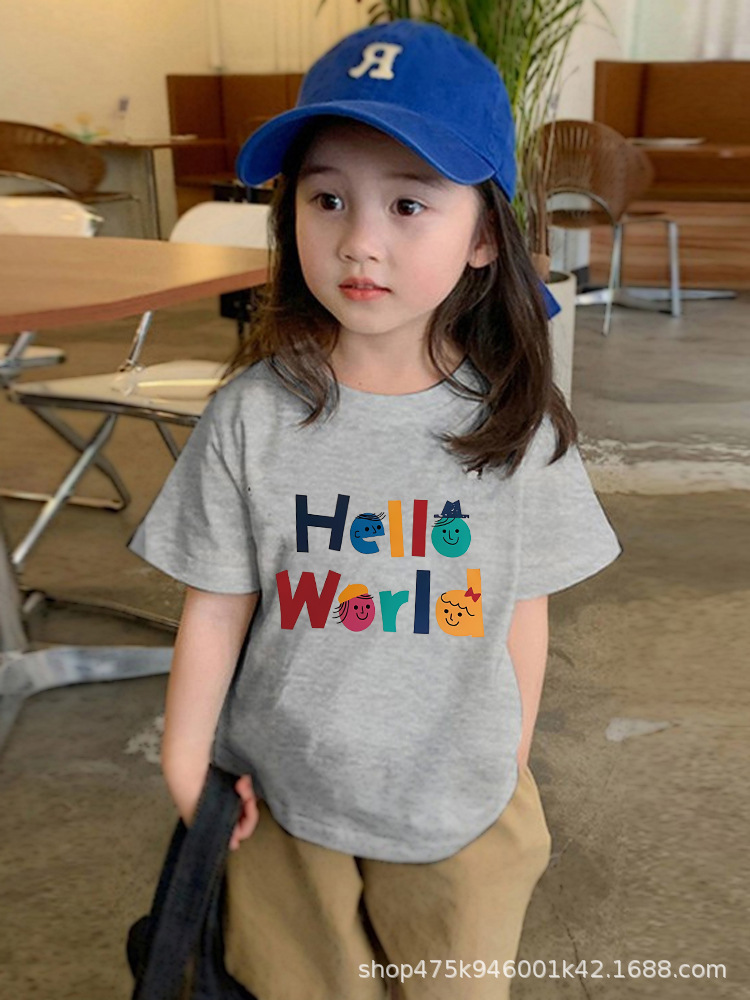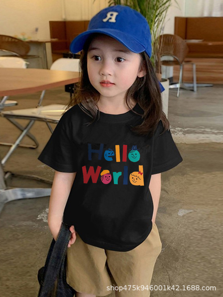 도매 소년 소녀 코튼 반팔 티셔츠 느슨한 2024 새로운 어린이 둥근 목 상단 여름 유행 바닥 셔츠스토어 가기