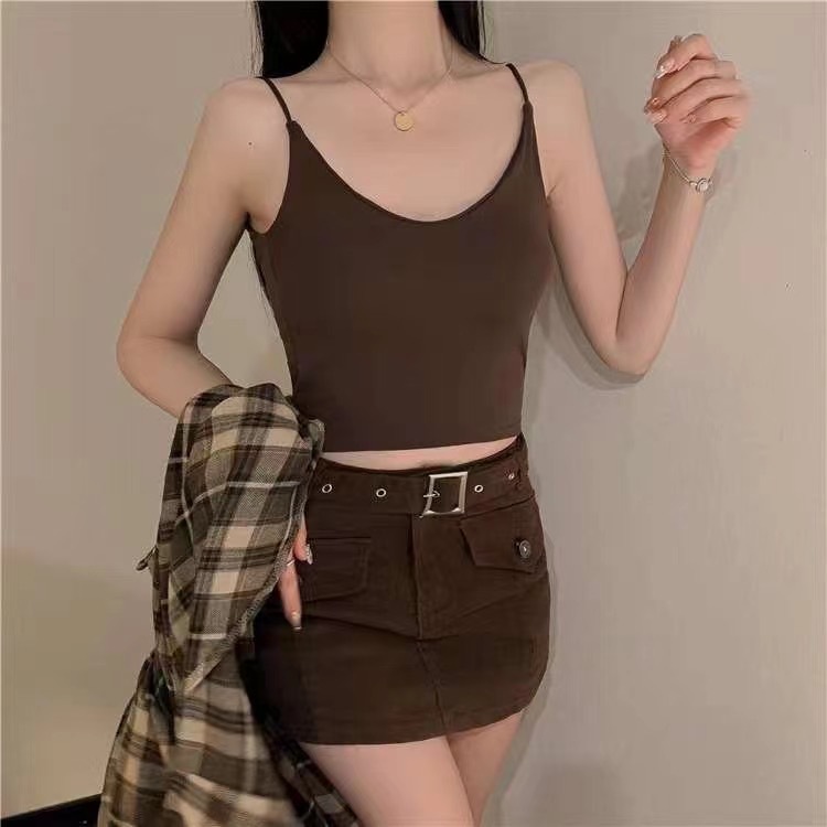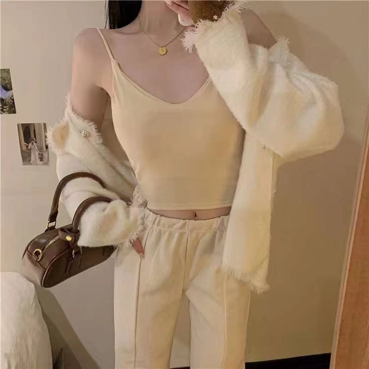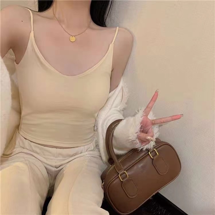 봄과 여름 새로운 달콤한 시원한 소녀 V-목 캐미솔 여성 겉옷 가슴 패드 유행 피부 친화적 인 섹시한 등스토어 가기