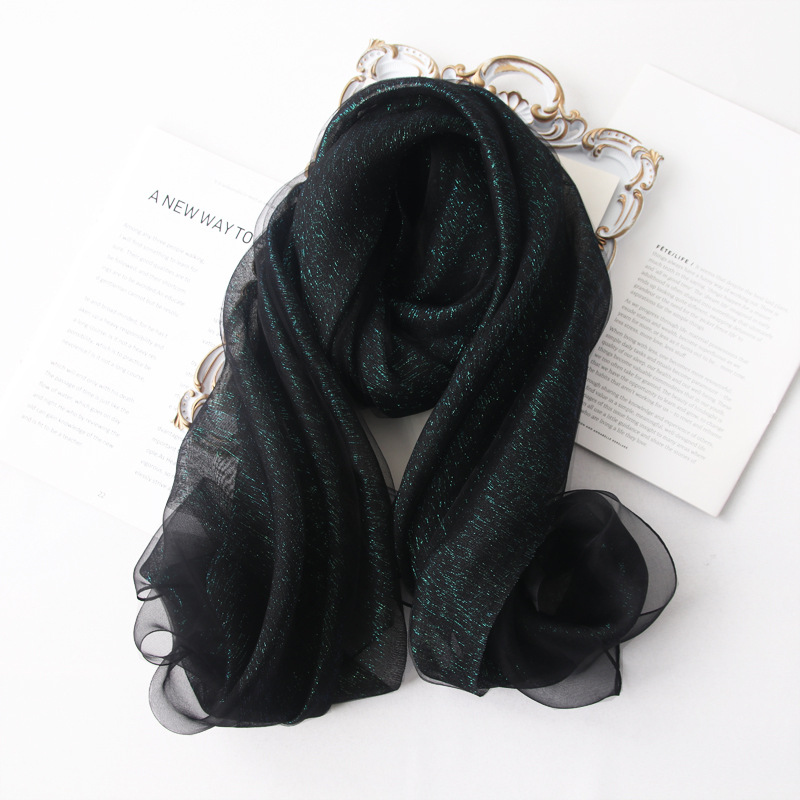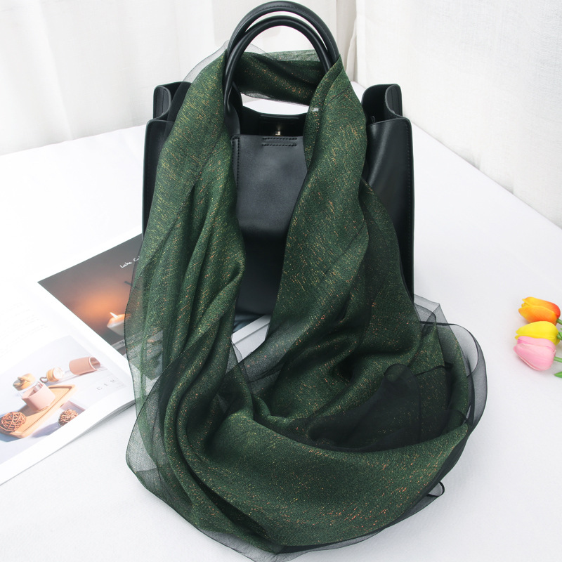 봄과 가을 새로운 더블 레이어 뽕나무 실크 스카프 반짝이는 실크 패션 원피스 목도리 긴 여성용 치삼 스카프