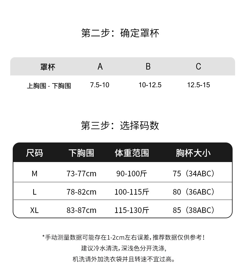 • XL:85(38ABC 컵) 낮은 가슴 83-87cm 무게 범위 57.50 kg-65.00 kg