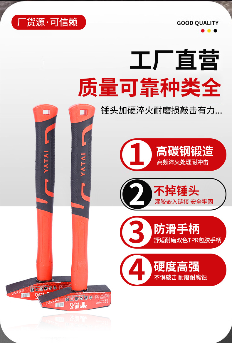 스팟 피터 해머 멀티 사양 높은 탄소 강철 담금질 단조 손 해머 덕빌 해머 가정용 수동 플라스틱 핸들 피터 해머