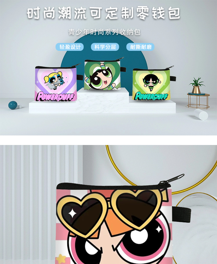 크로스보더 파워퍼프걸 동전지갑 어린이 만화 대용량 카드지갑 학생 미니 수납가방 카드홀더