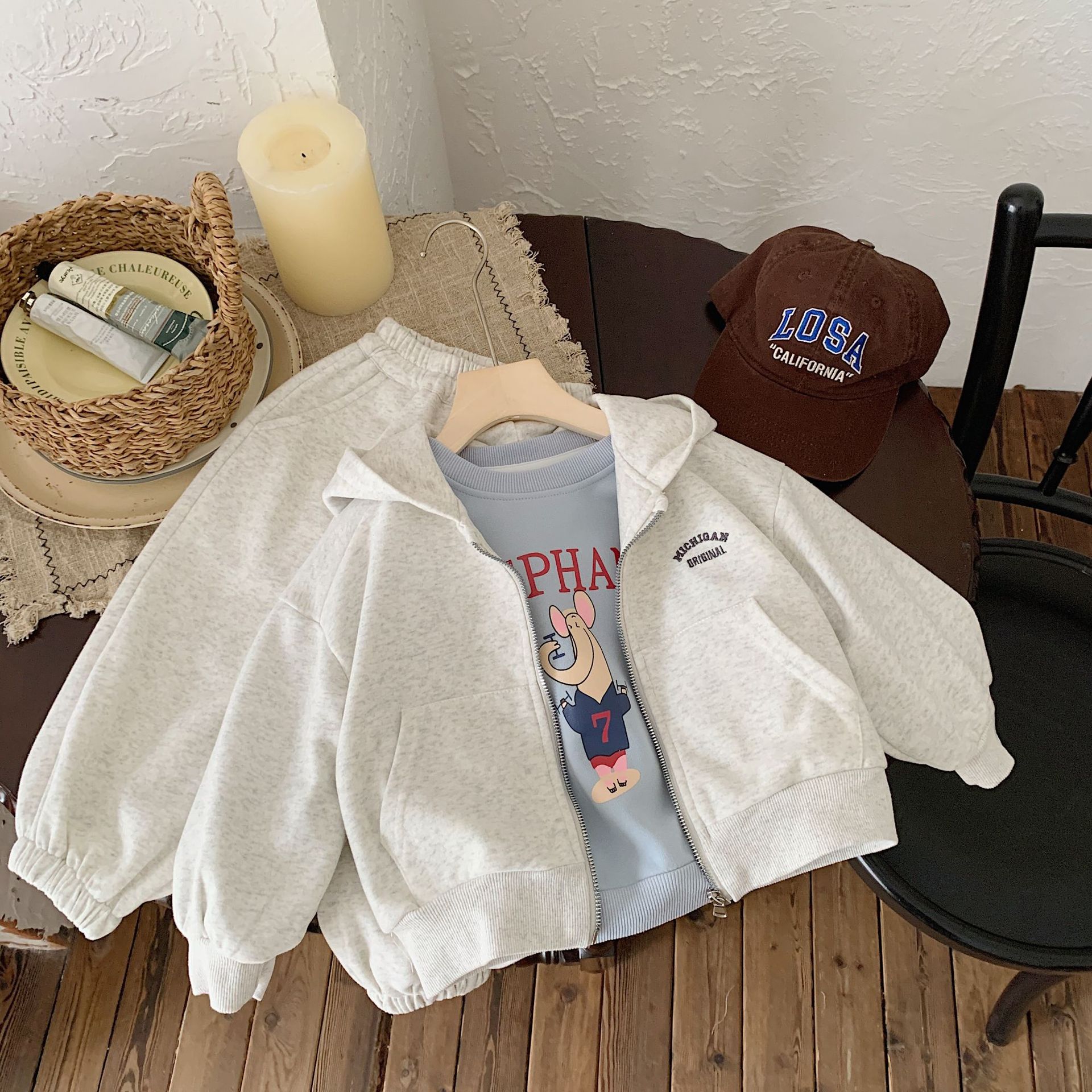 어린이 정장 2025 Bangcheng 가을 아동 의류 솔리드 컬러 투피스 편지 자수 코트 캐주얼 바지 G0032
