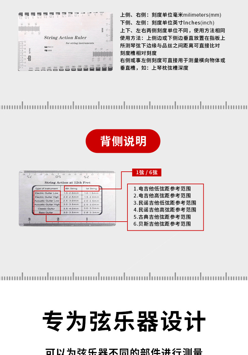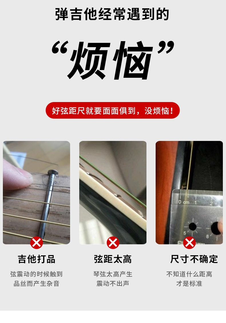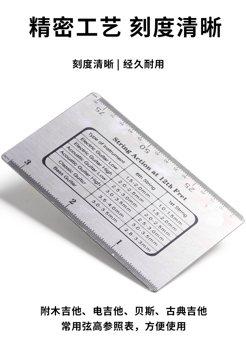 기타 스트링 거리 측정기 베이스 클래식 일렉트릭 기타 액세서리 튜닝 넥 렌치 스트링 높이 측정기 스테인리스스토어 가기
