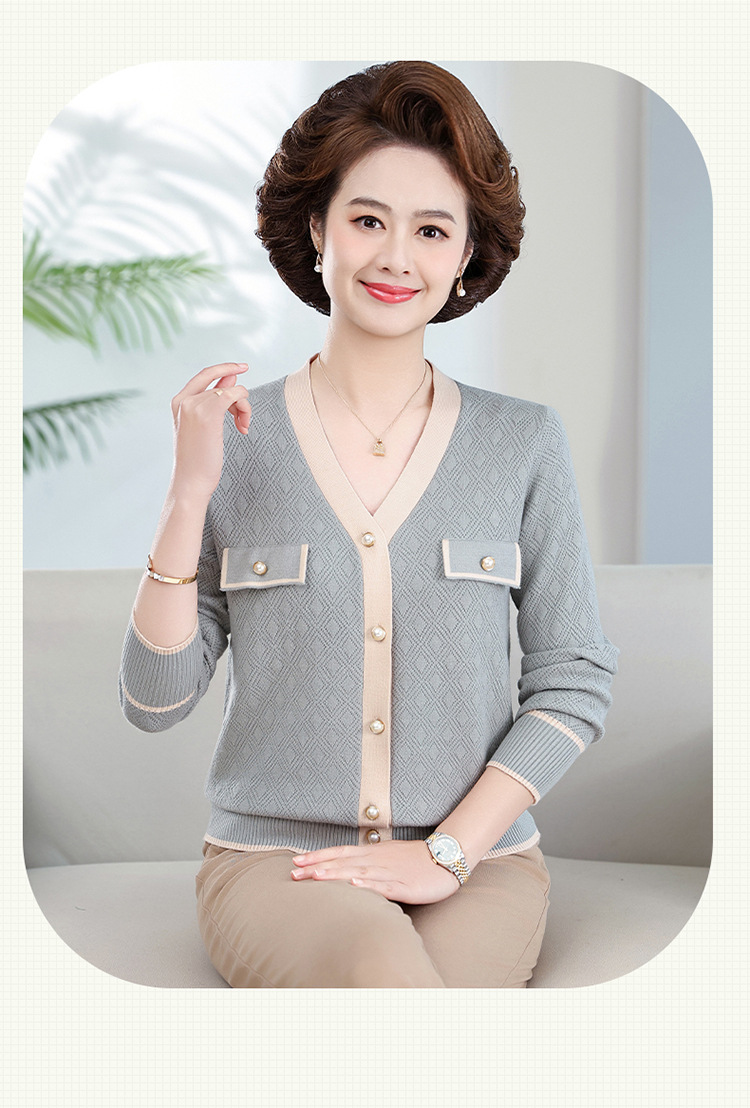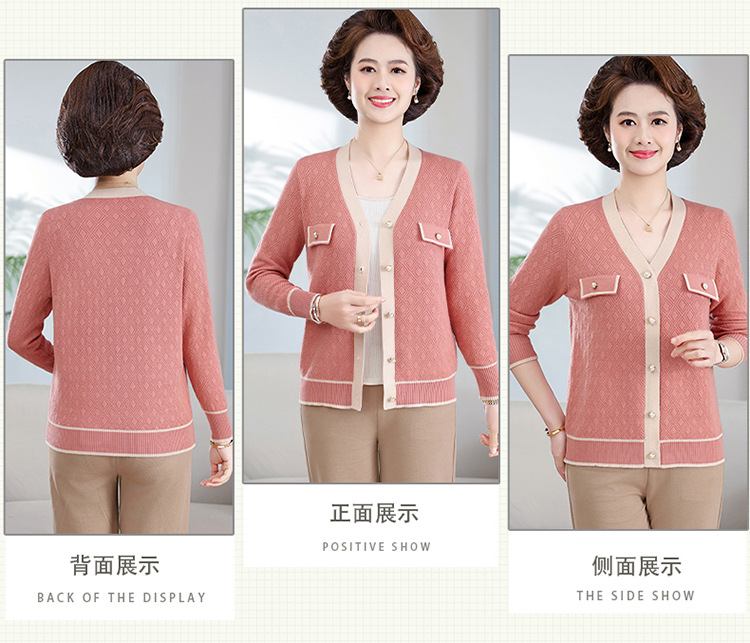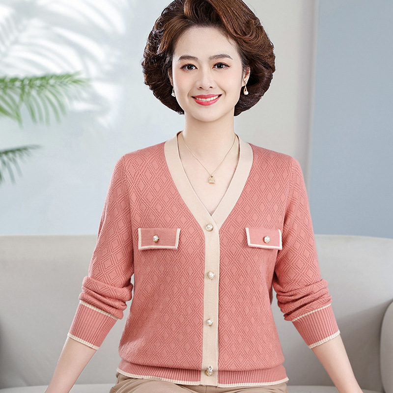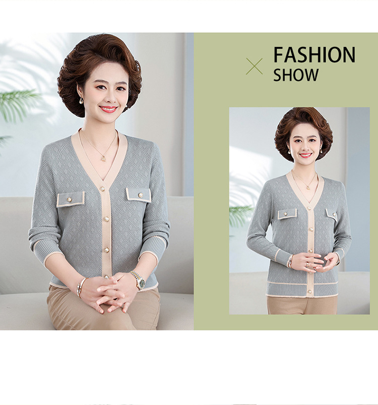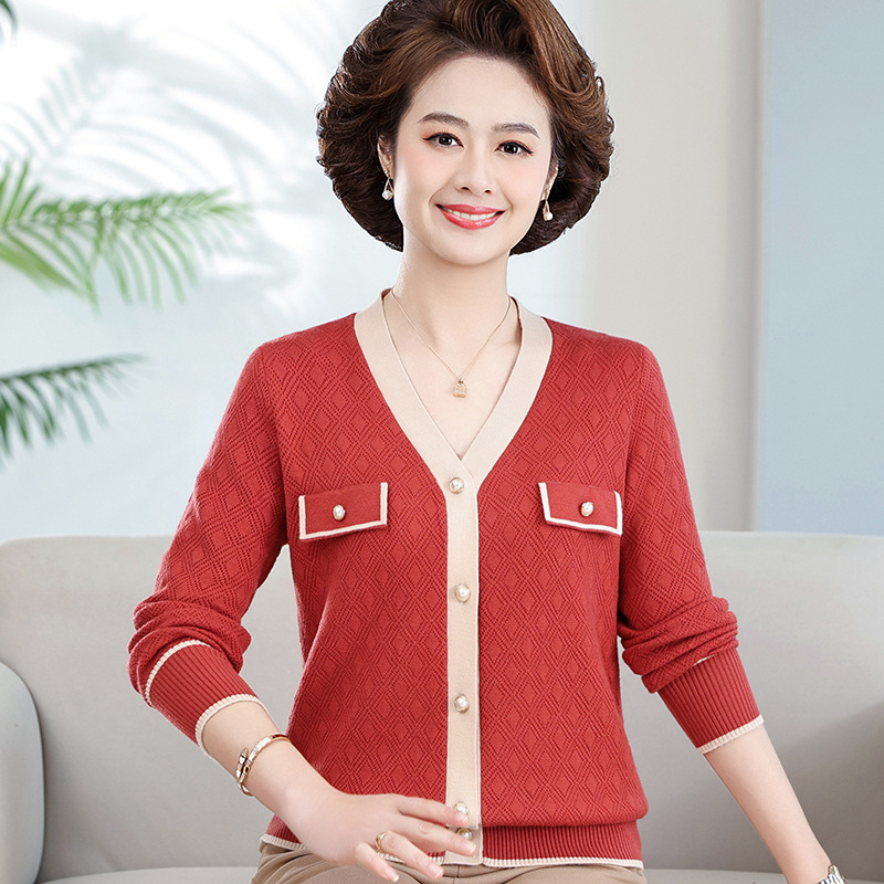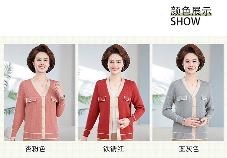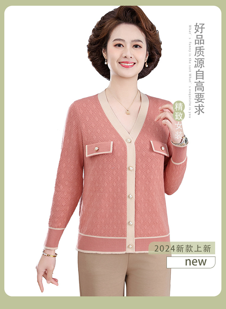 2024 봄과 가을 새로운 중년 및 노인 어머니들은 세련된 서양식 니트웨어 여성 스웨터 바닥 셔츠 니트 카디건을 착용합니다.스토어 가기