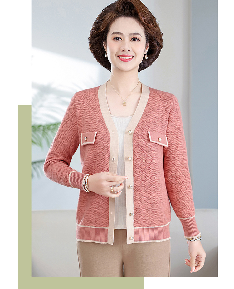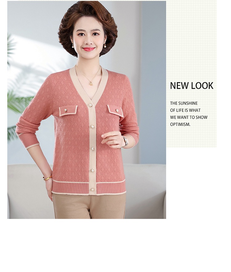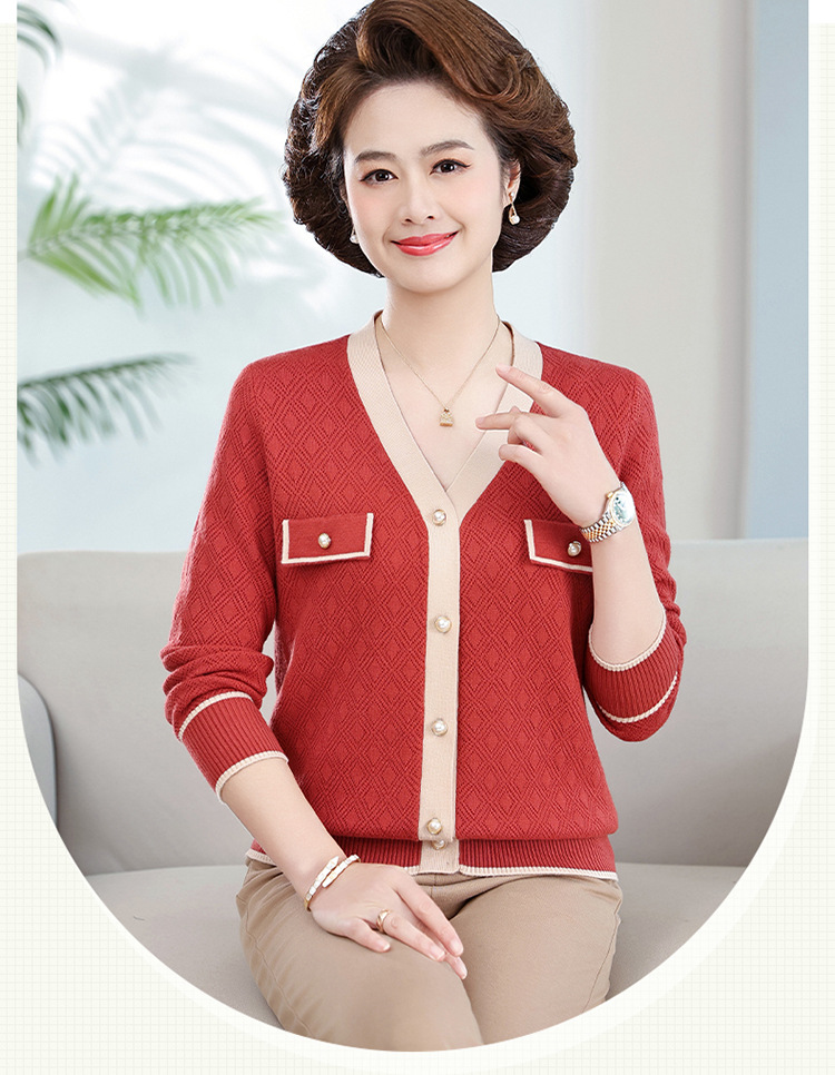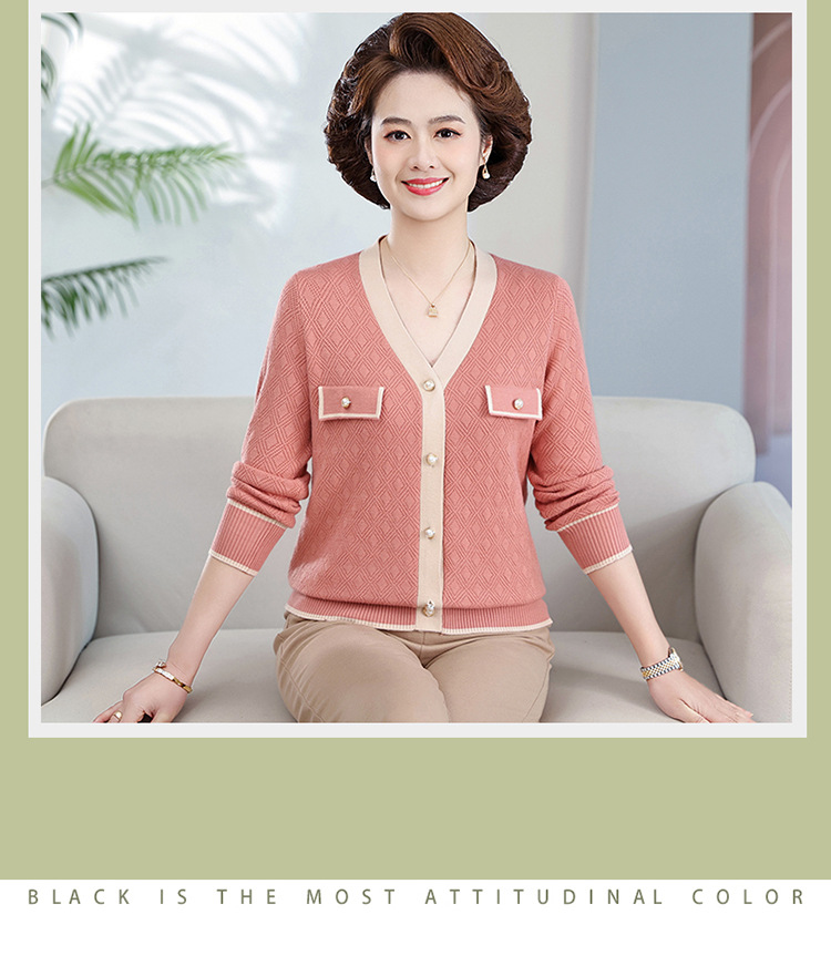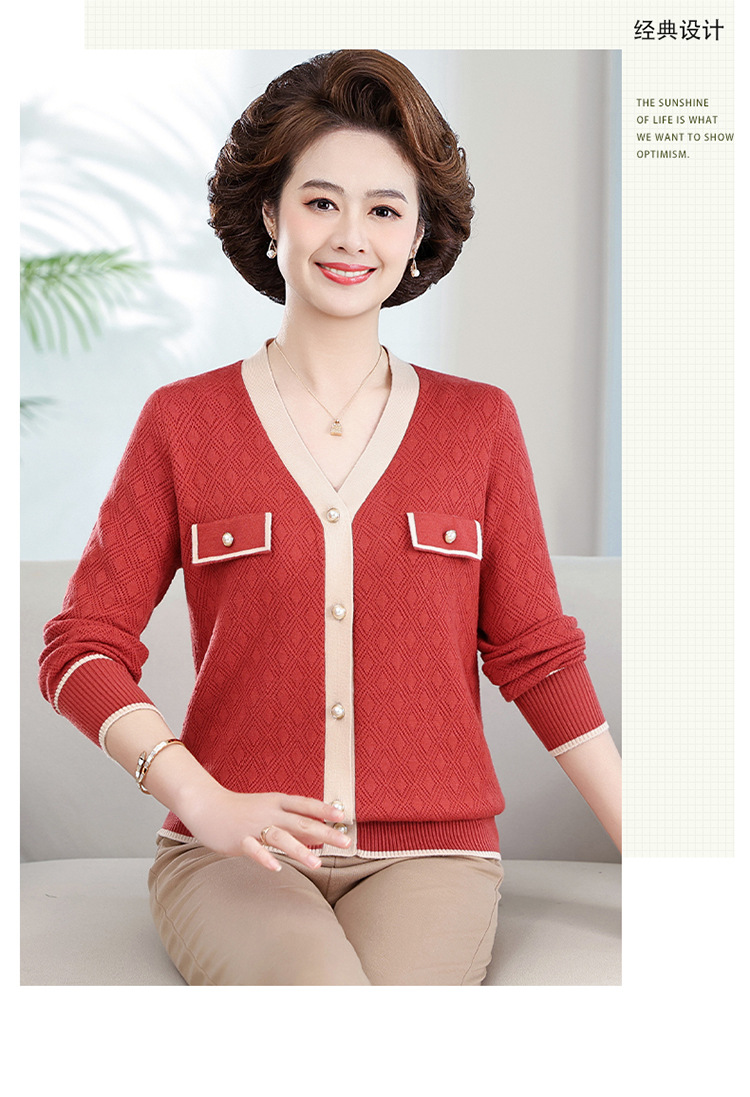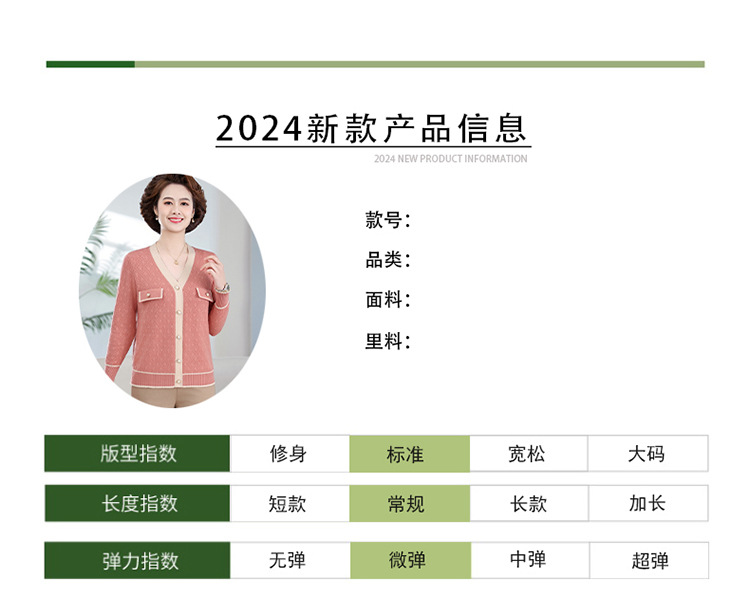 2024 봄과 가을 새로운 중년 및 노인 어머니들은 세련된 서양식 니트웨어 여성 스웨터 바닥 셔츠 니트 카디건을 착용합니다.스토어 가기