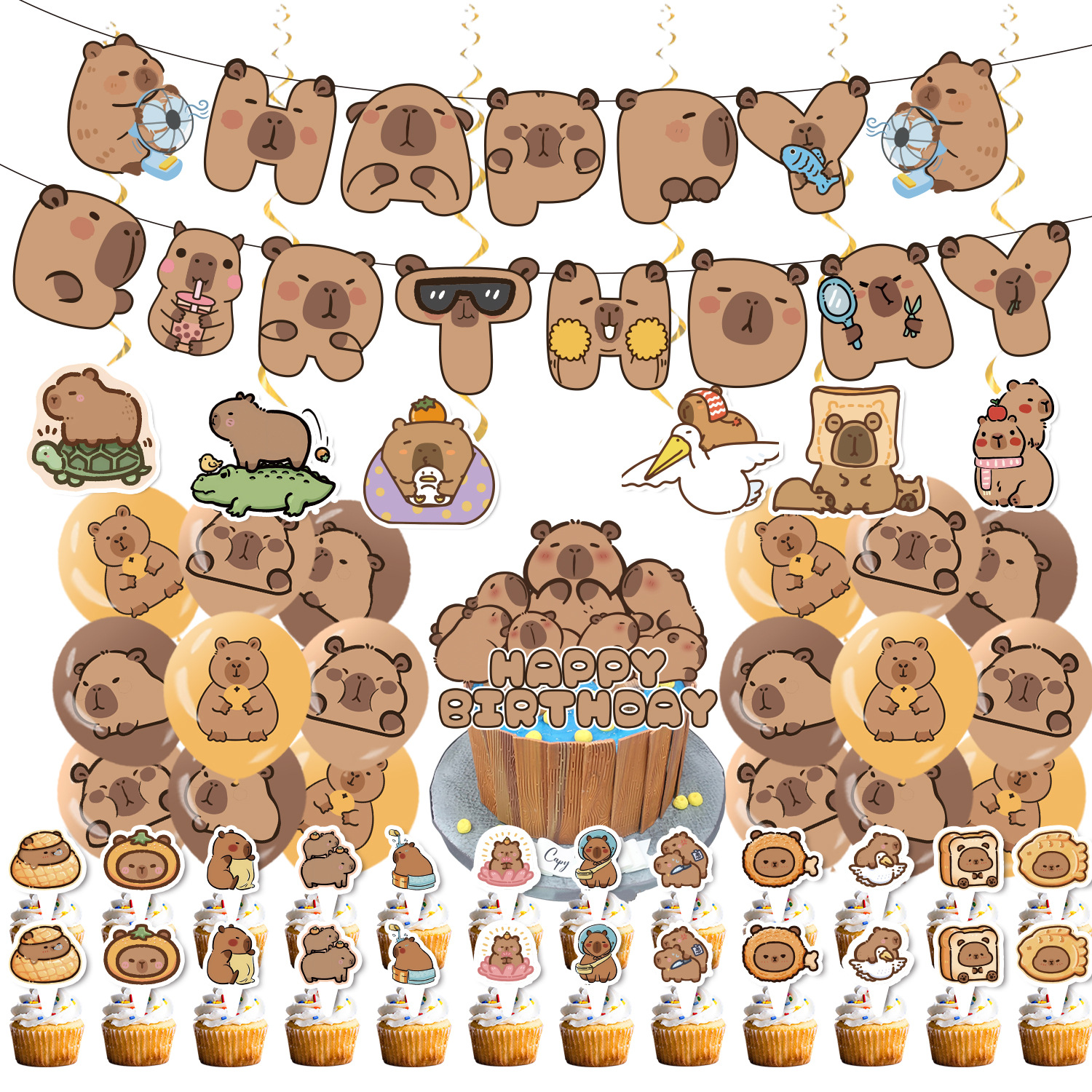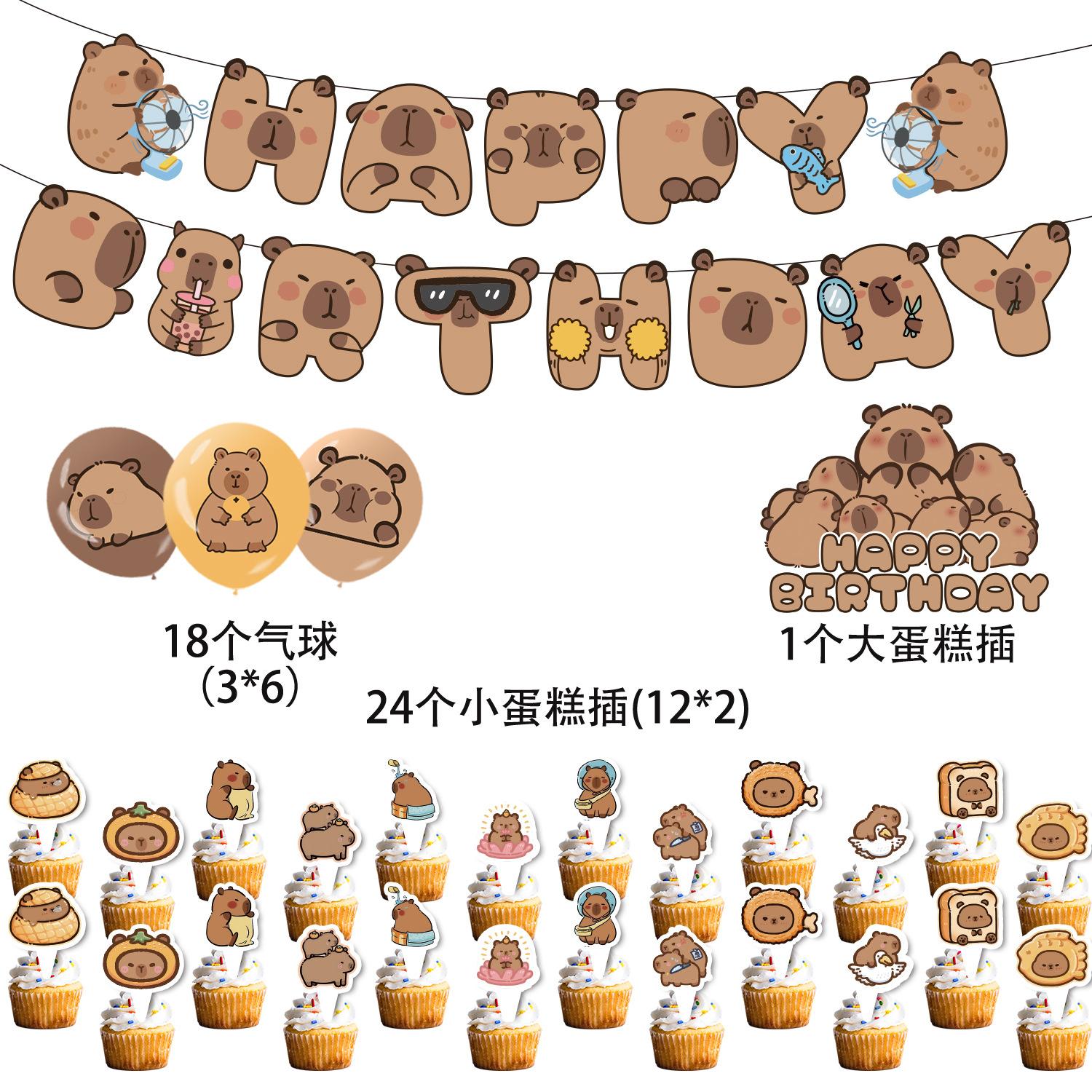 카피바라 만화 테마 생일 장면 장식 용품 파티 용품 종이 깃발 배너 풍선 세트 장식