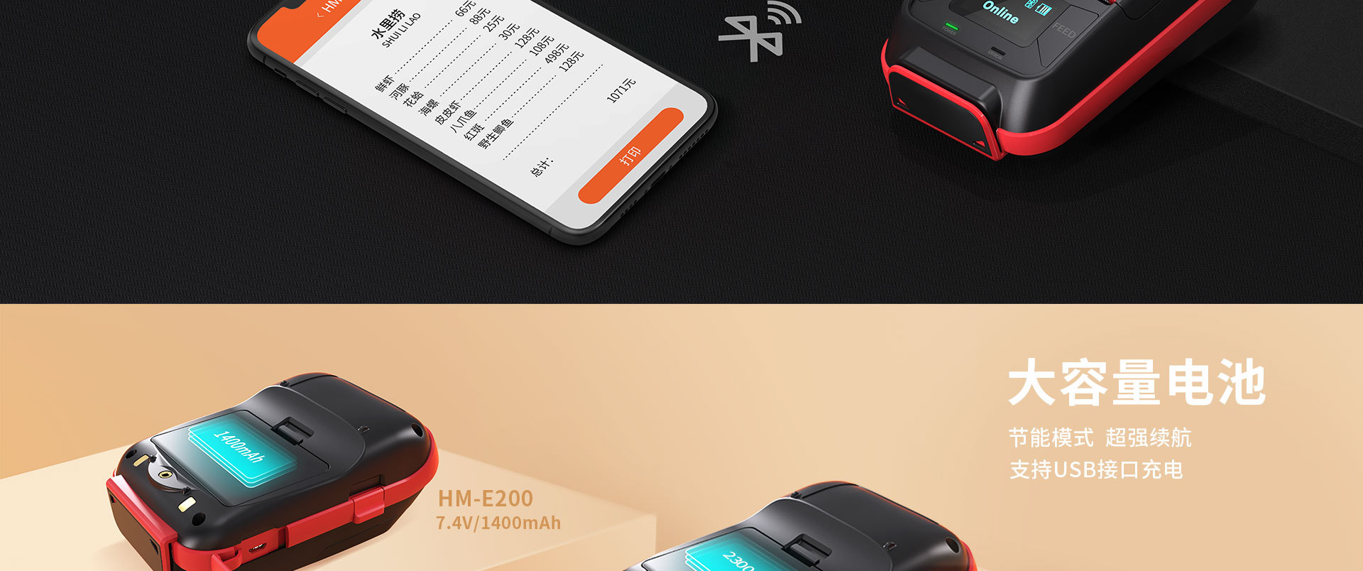 Hanyin HM-E200/300 휴대용 블루투스 라벨 프린터 물류 창고스토어 가기