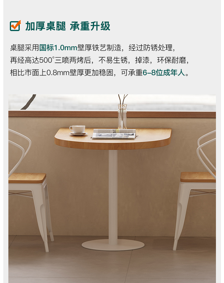 벽 단단한 나무 반 원형 테이블 인터넷 유명 바베큐 우유 차 가게 레스토랑 철 발코니 작은 사각형 테이블 상업 통나무 식탁 및 의자