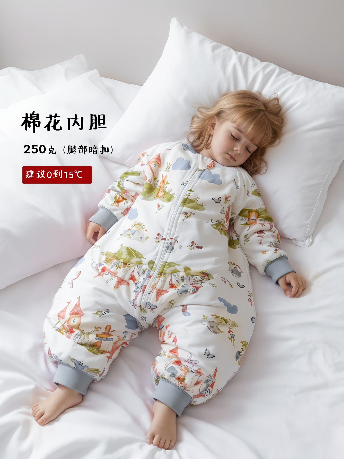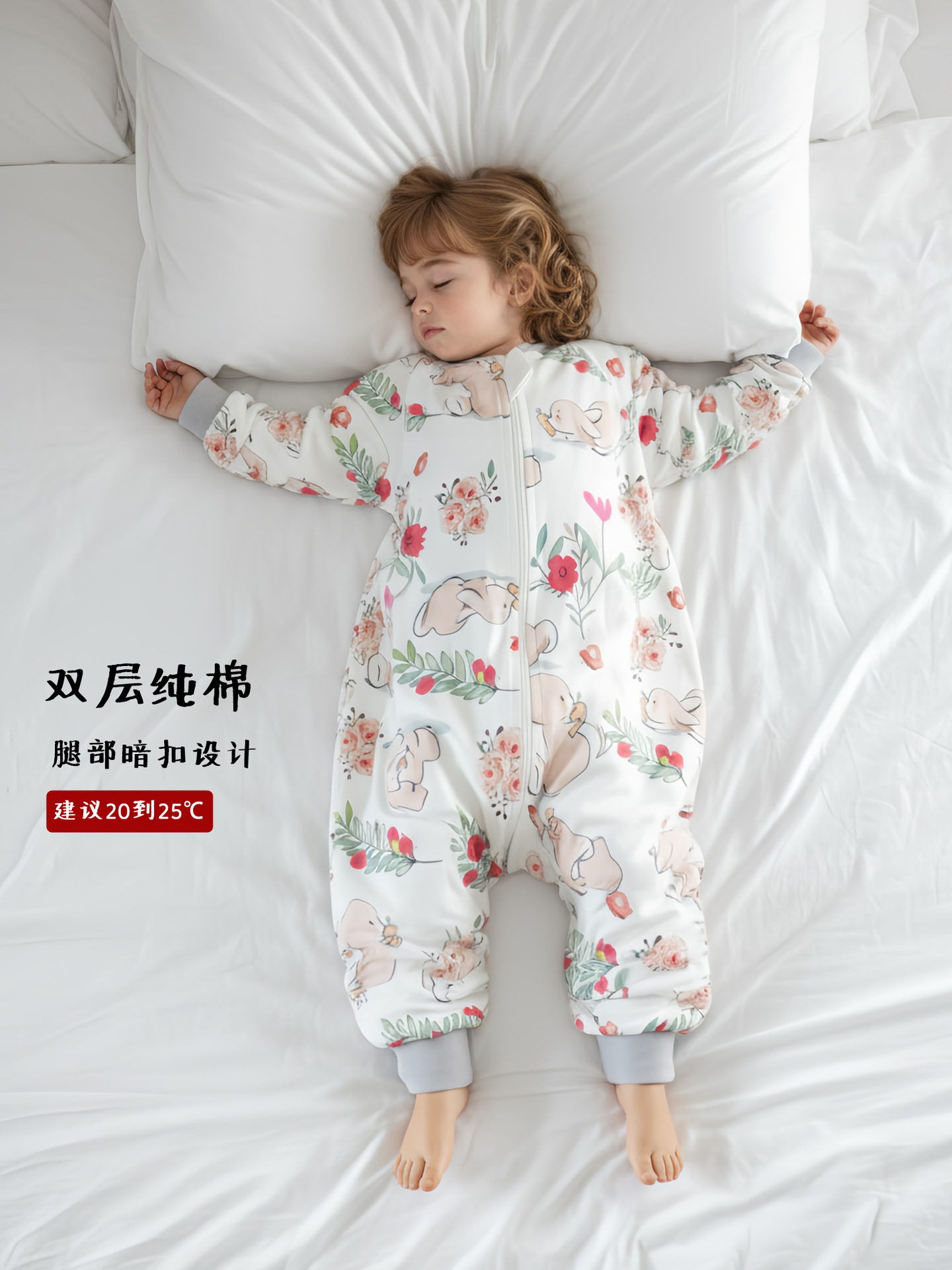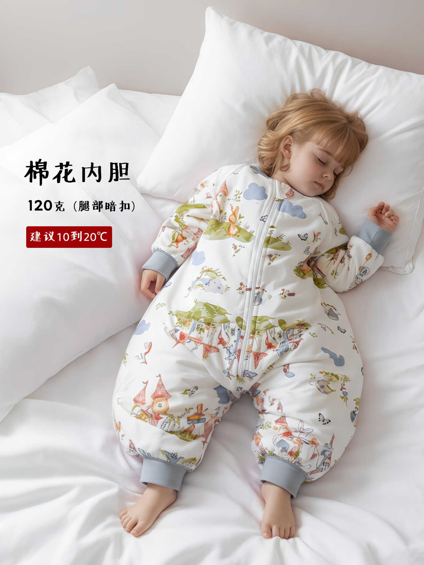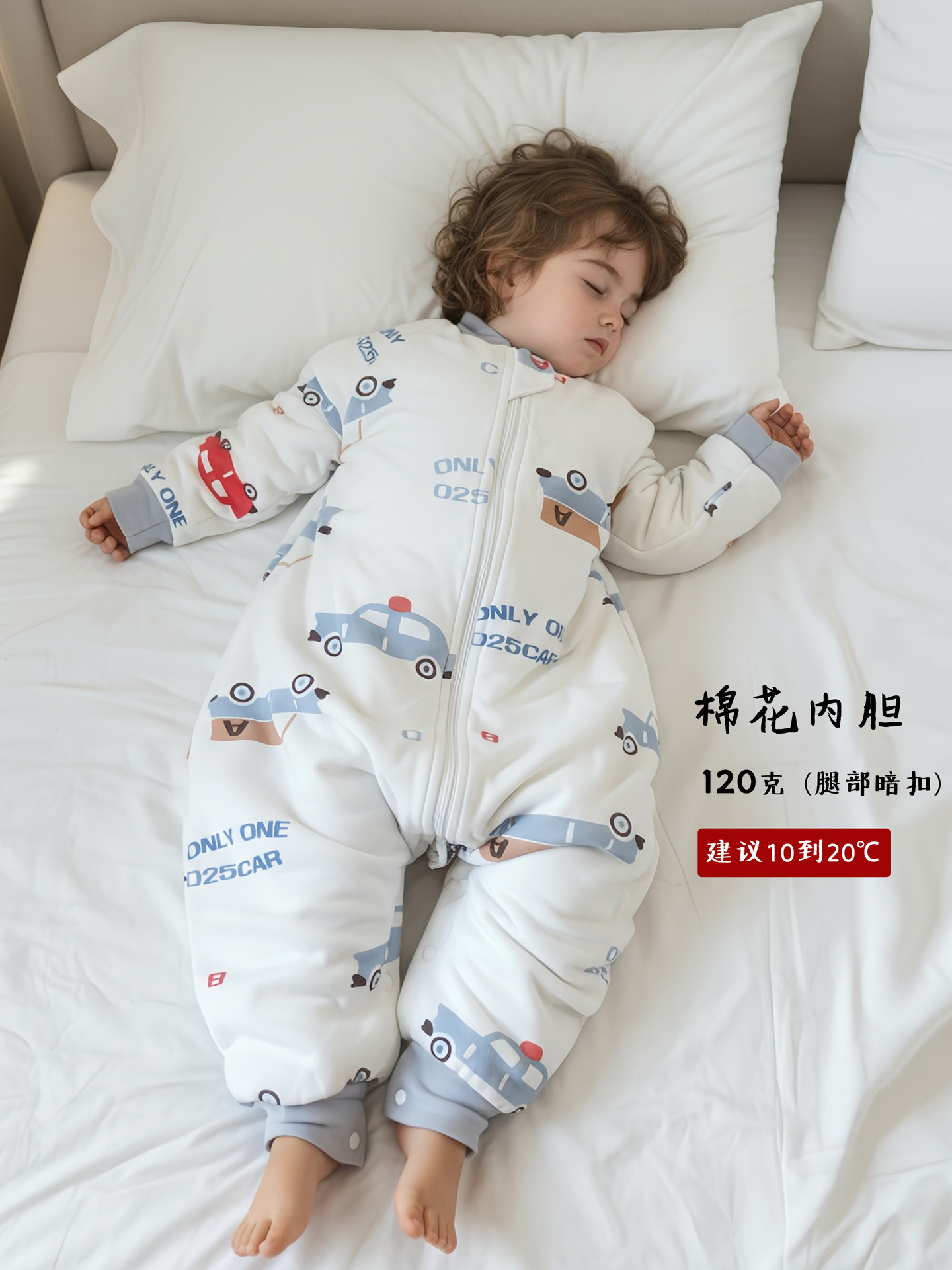 아기 스플릿 레그 침낭 봄과 가을 더블 레이어 순면 아기 원피스 잠옷 어린이 안티 킥 퀼트 유물 포시즌 유니버설스토어 가기