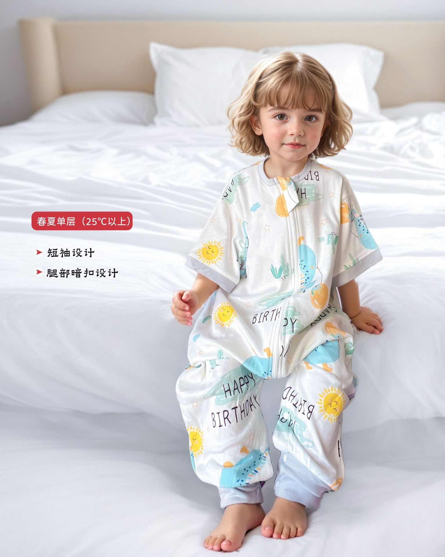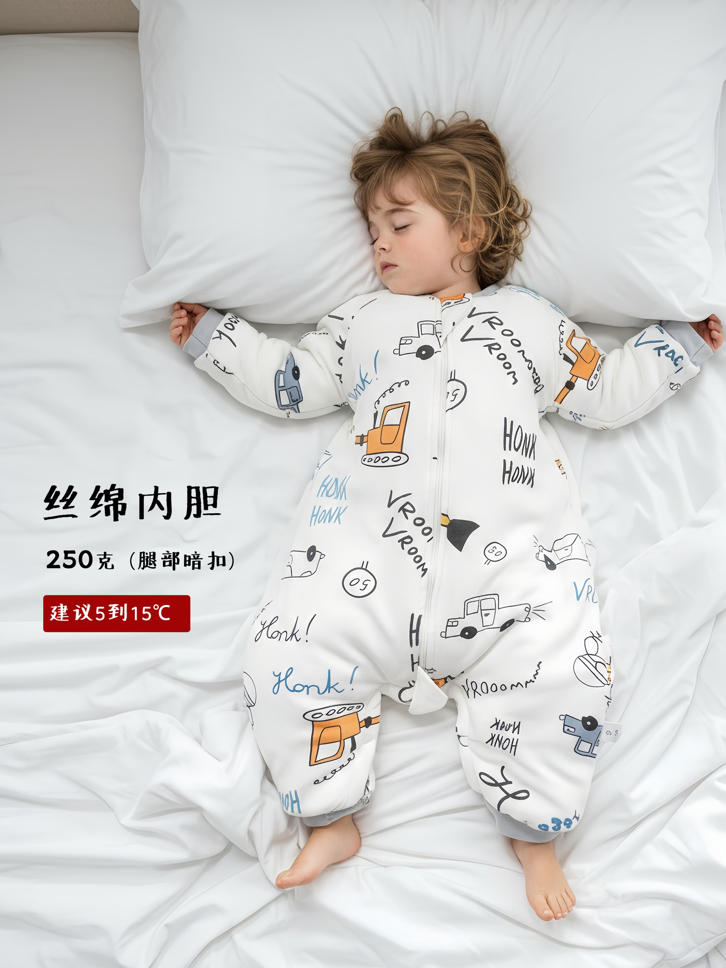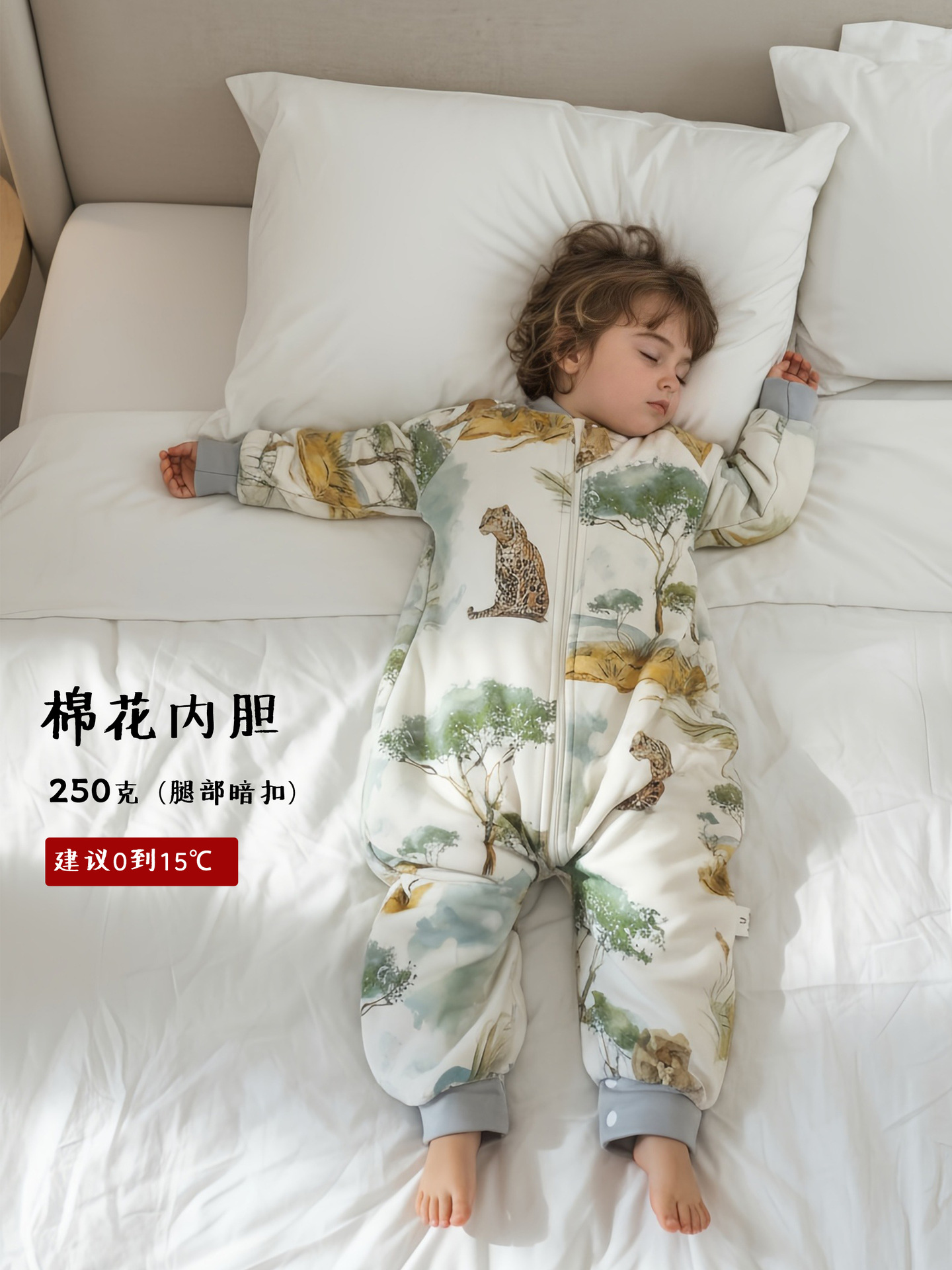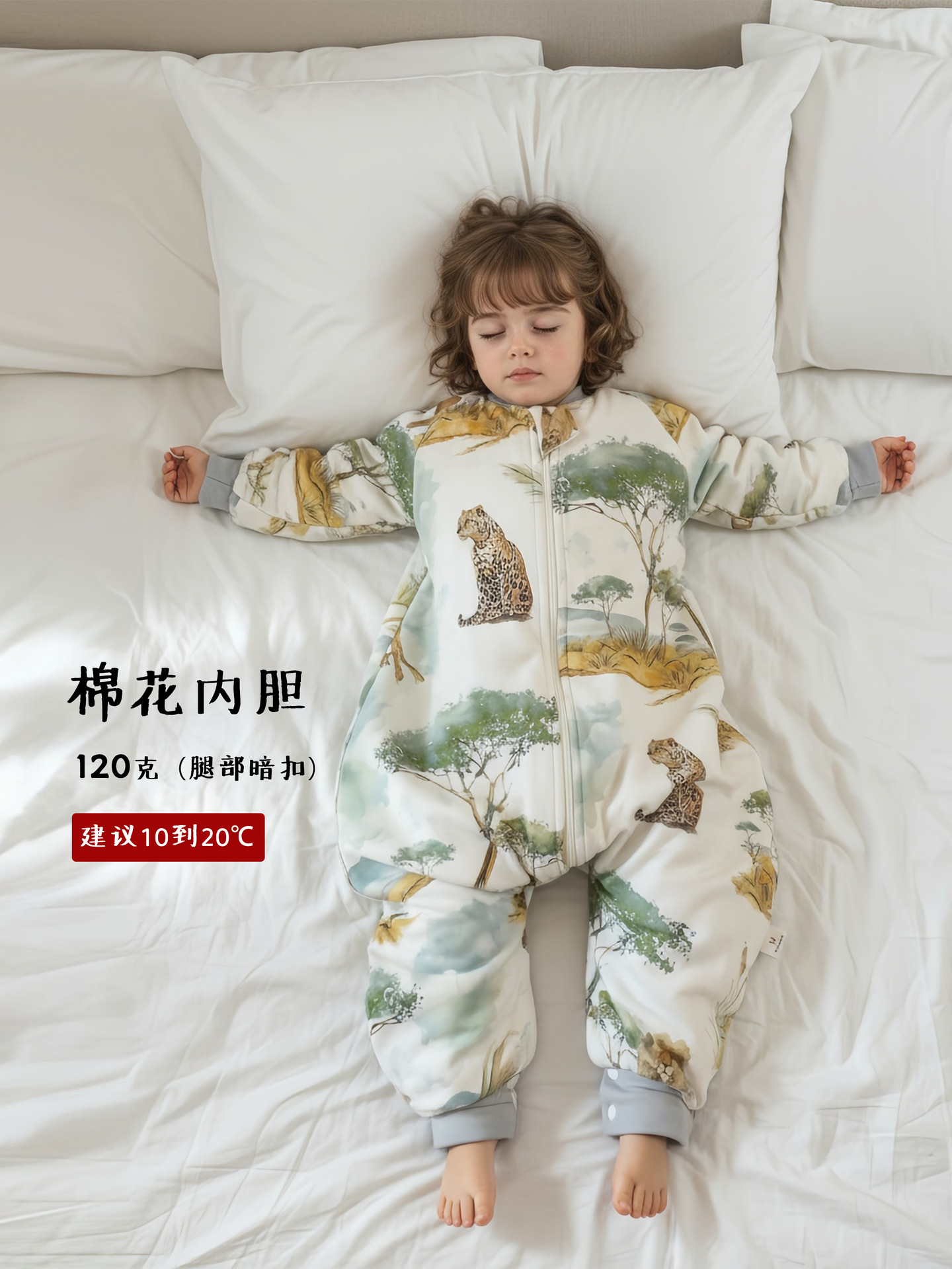 아기 스플릿 레그 침낭 봄과 가을 더블 레이어 순면 아기 원피스 잠옷 어린이 안티 킥 퀼트 유물 포시즌 유니버설스토어 가기