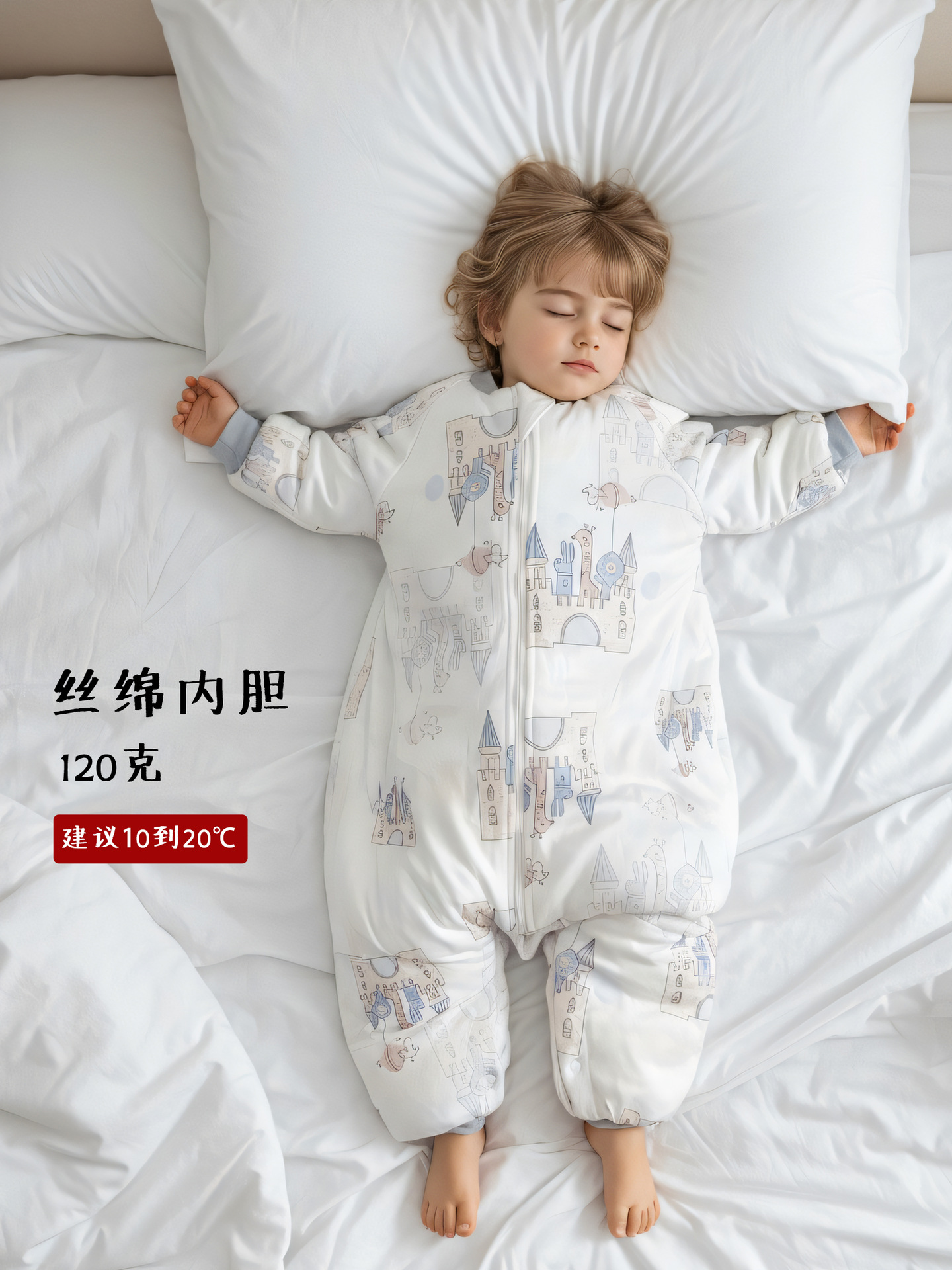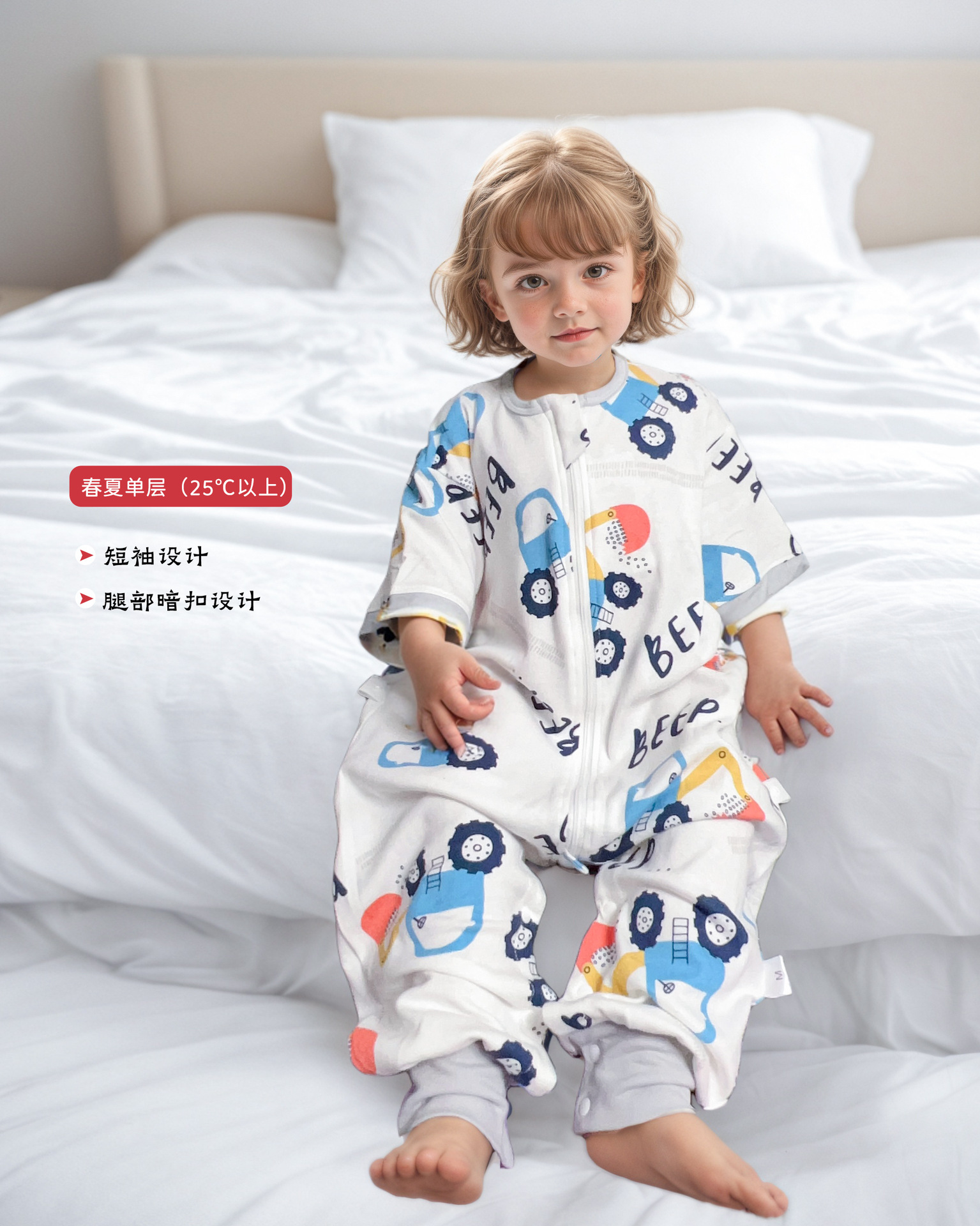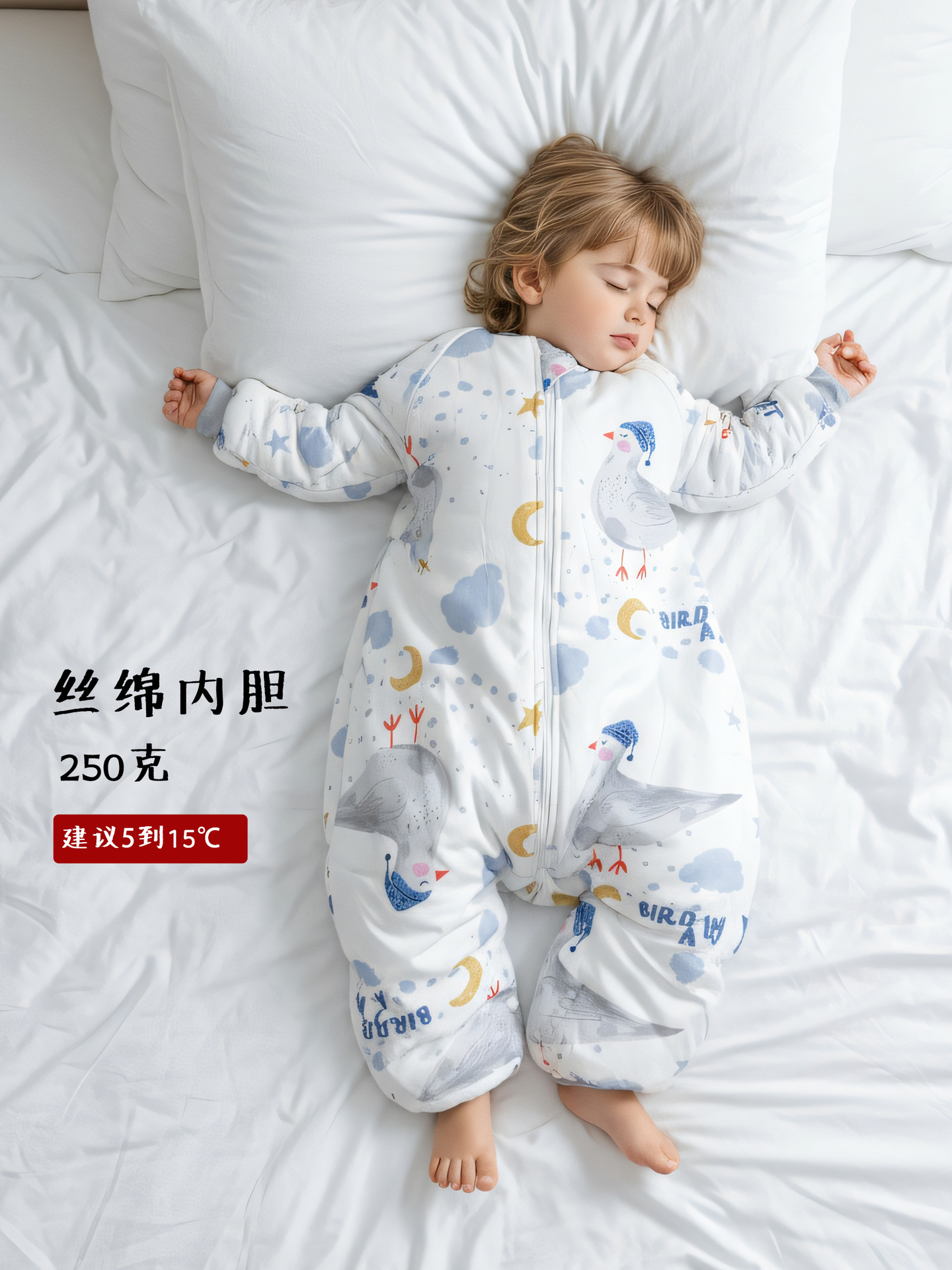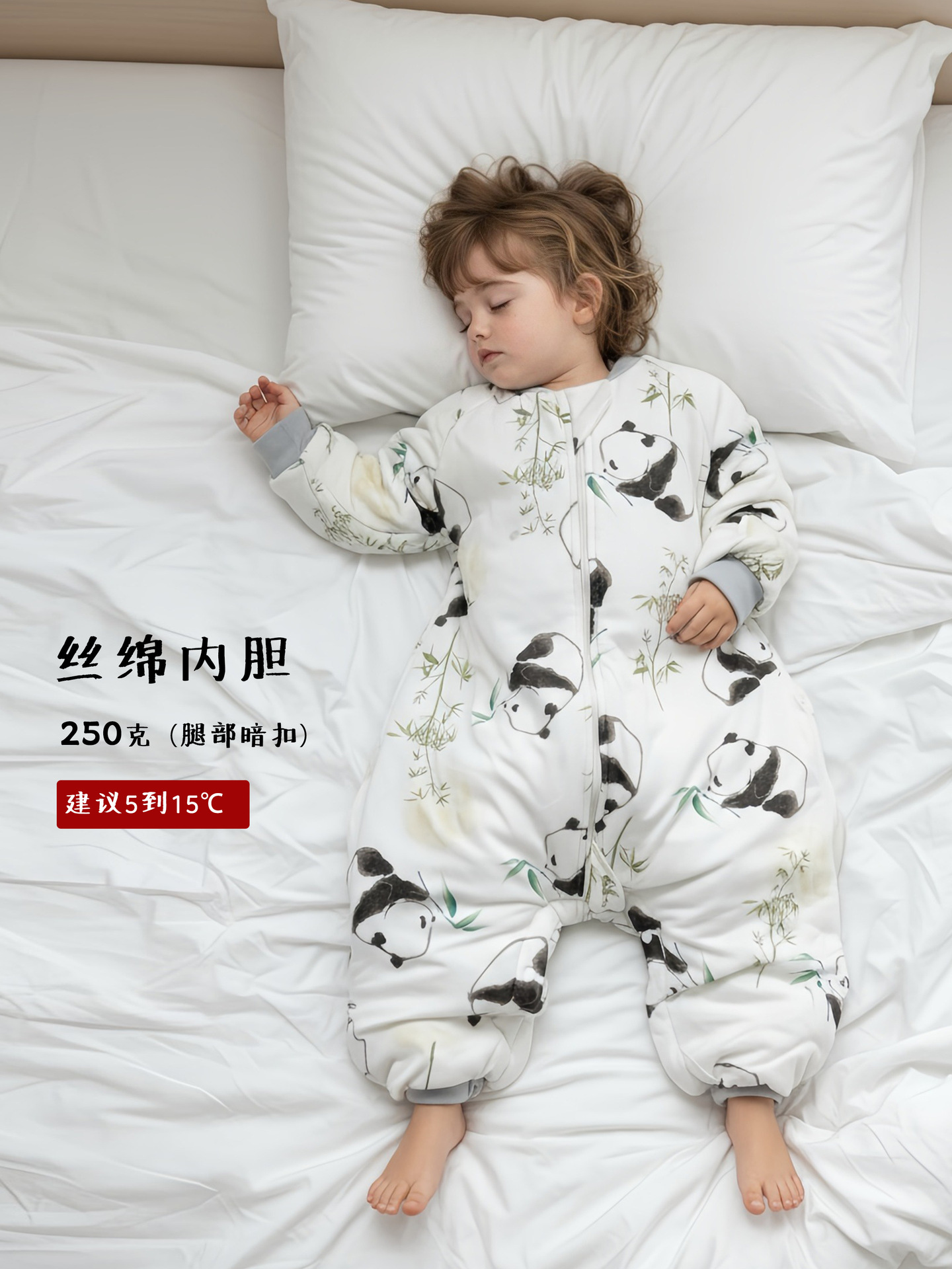 아기 스플릿 레그 침낭 봄과 가을 더블 레이어 순면 아기 원피스 잠옷 어린이 안티 킥 퀼트 유물 포시즌 유니버설스토어 가기