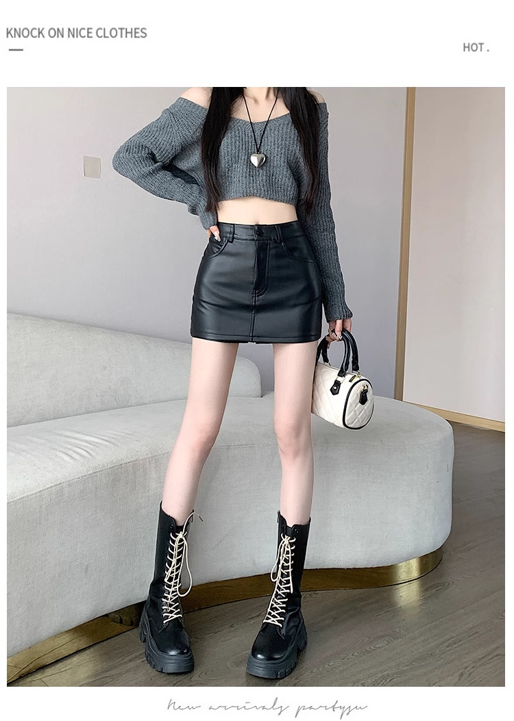 블랙 푸 스커트 핫 소녀 스커트 2024 봄 새로운 높은 허리 질감 a-라인 엉덩이 스커트 가죽 퀼로트스토어 가기