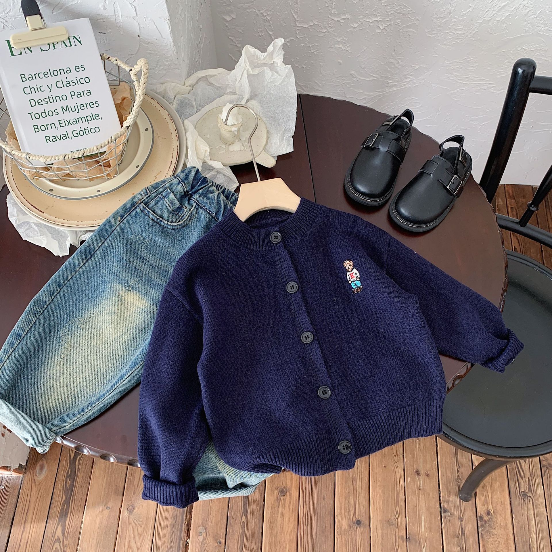 어린이 스웨터 Bangcheng 2025 가을 아동 의류 니트 카디건 소년과 소녀 곰 자수 탑 재킷 MY0008스토어 가기