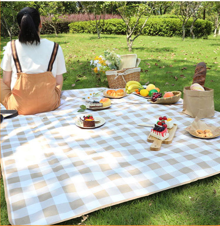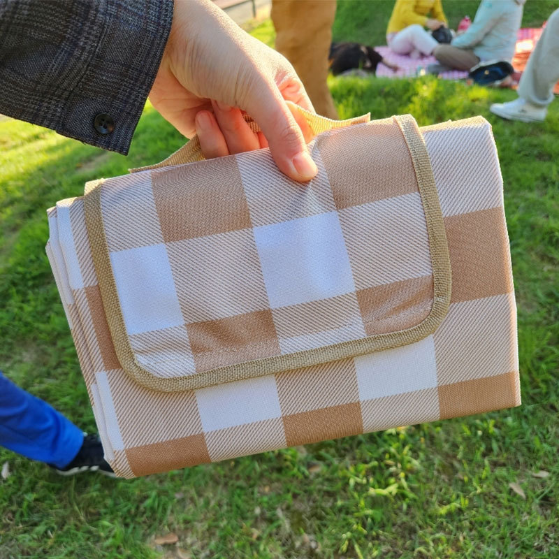 • 갈색 대형 격자 무늬 캠핑 매트 암호화된 옥스포드 천
