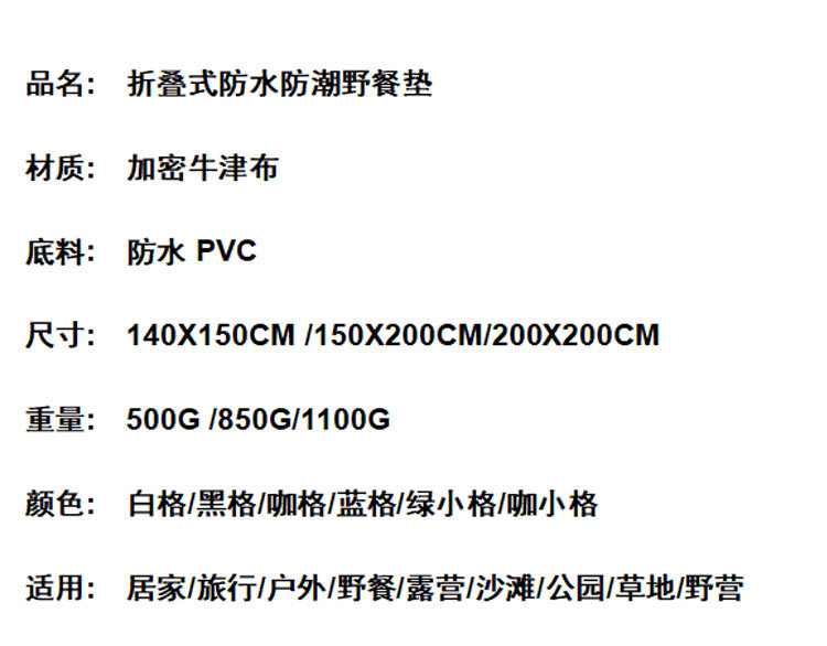 • 검은색 대형 격자 무늬 캠핑 매트 암호화된 옥스포드 천