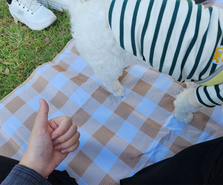 • 파란색 대형 격자 무늬 캠핑 매트 암호화된 옥스포드 천