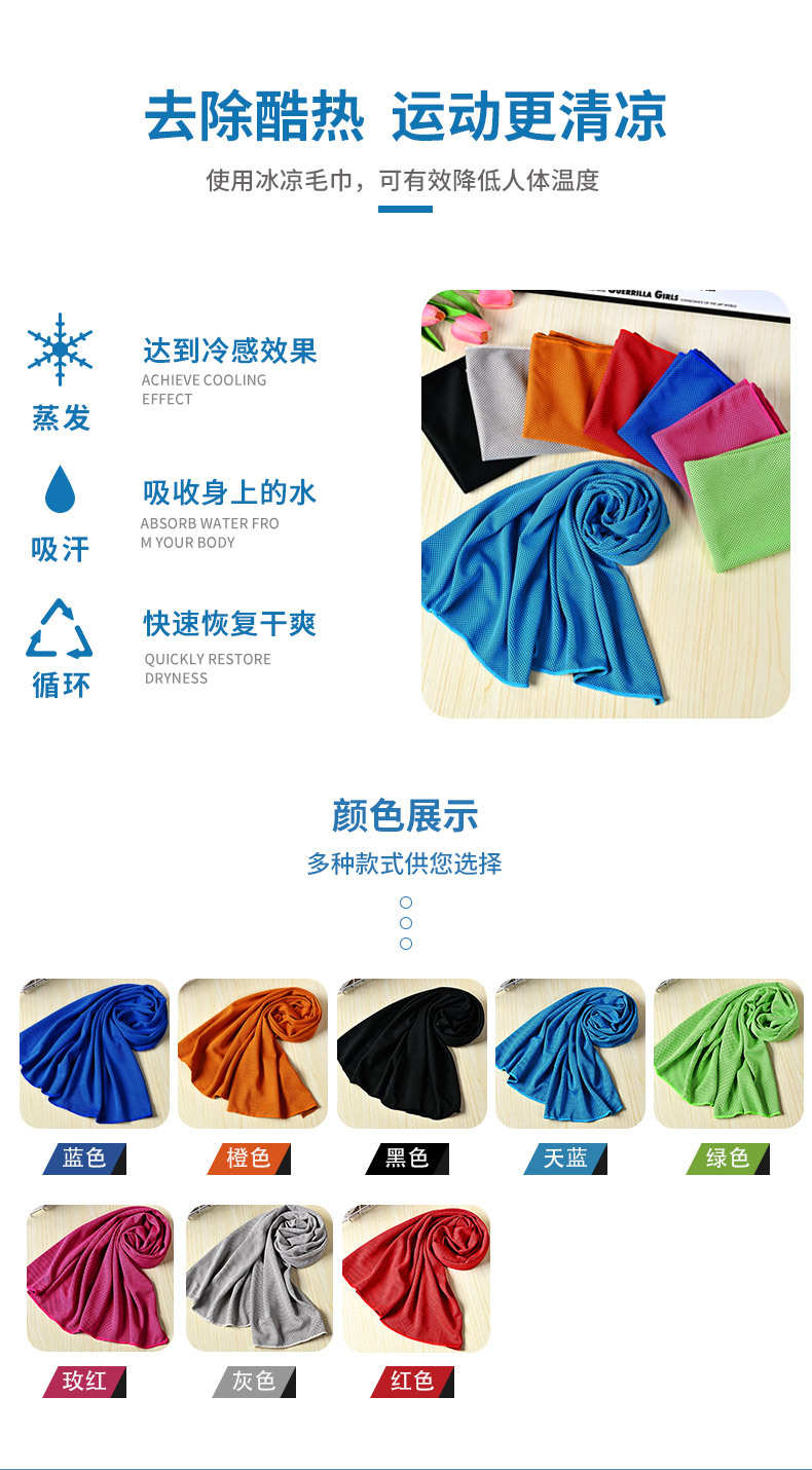 여름 차가운 느낌 스포츠 수건 요가 피트니스 냉각 빠른 건조 땀 흡수 수건 시원한 느낌 냉각 아이스 타월 인쇄 로고