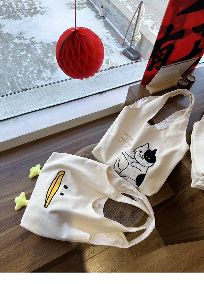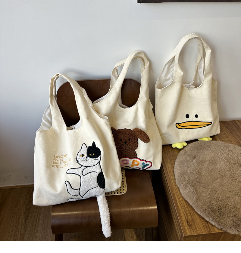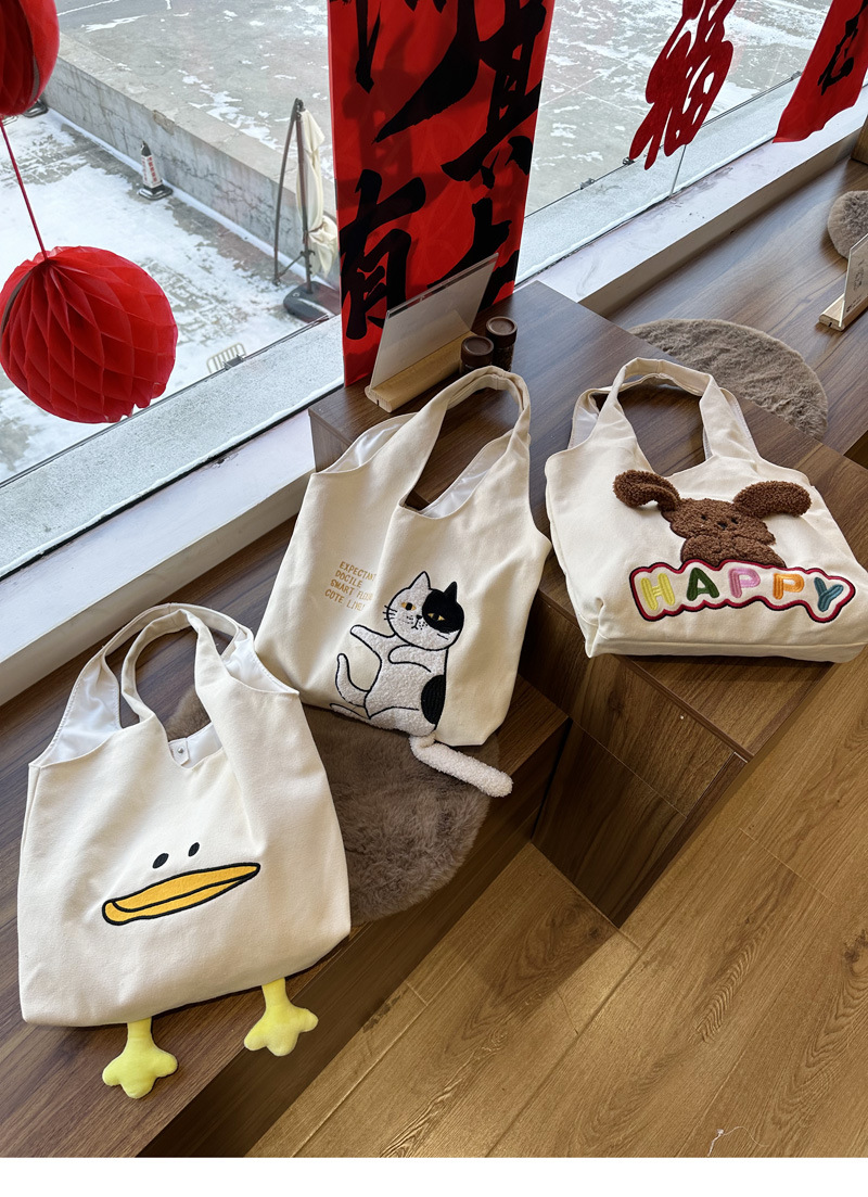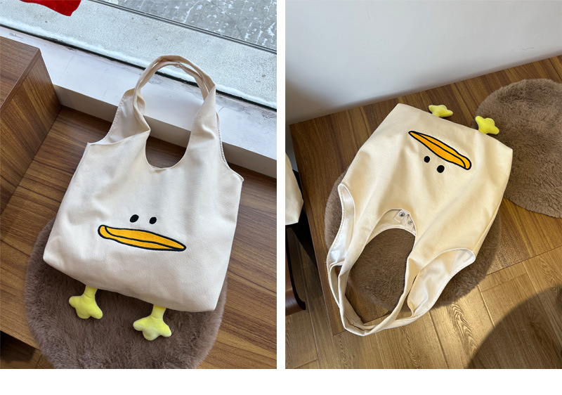 • 큰 입 오리 베이지 캔버스 쇼핑백