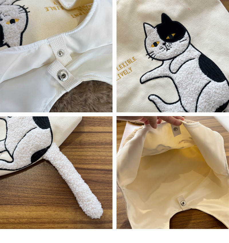 • 흑백 고양이 베이지 캔버스 쇼핑백