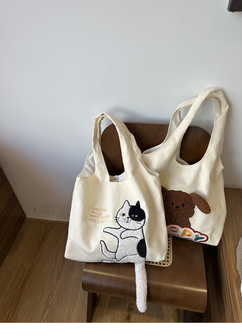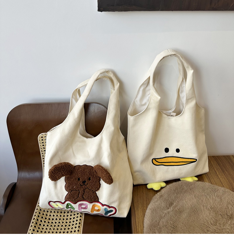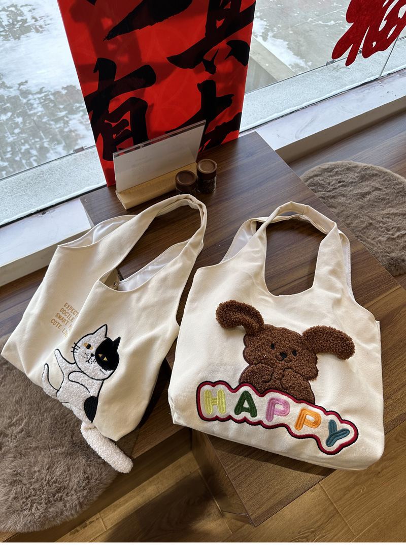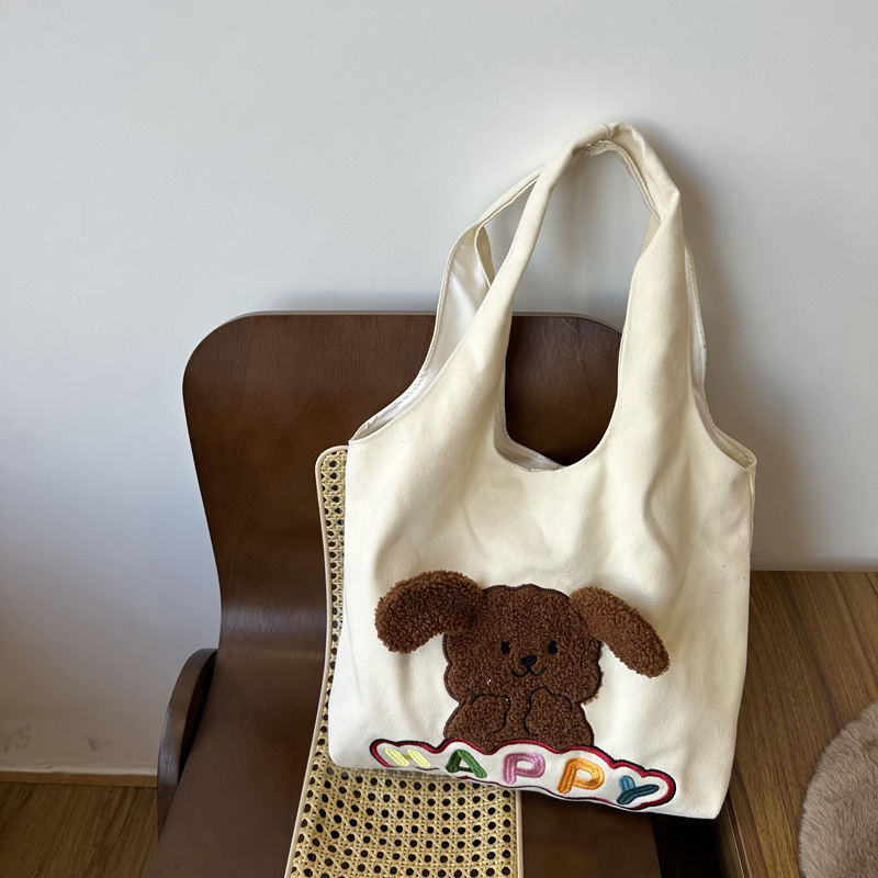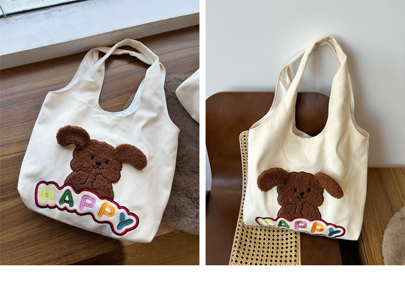 • 해피 개 베이지 캔버스 쇼핑백
