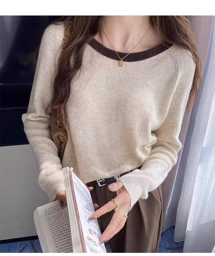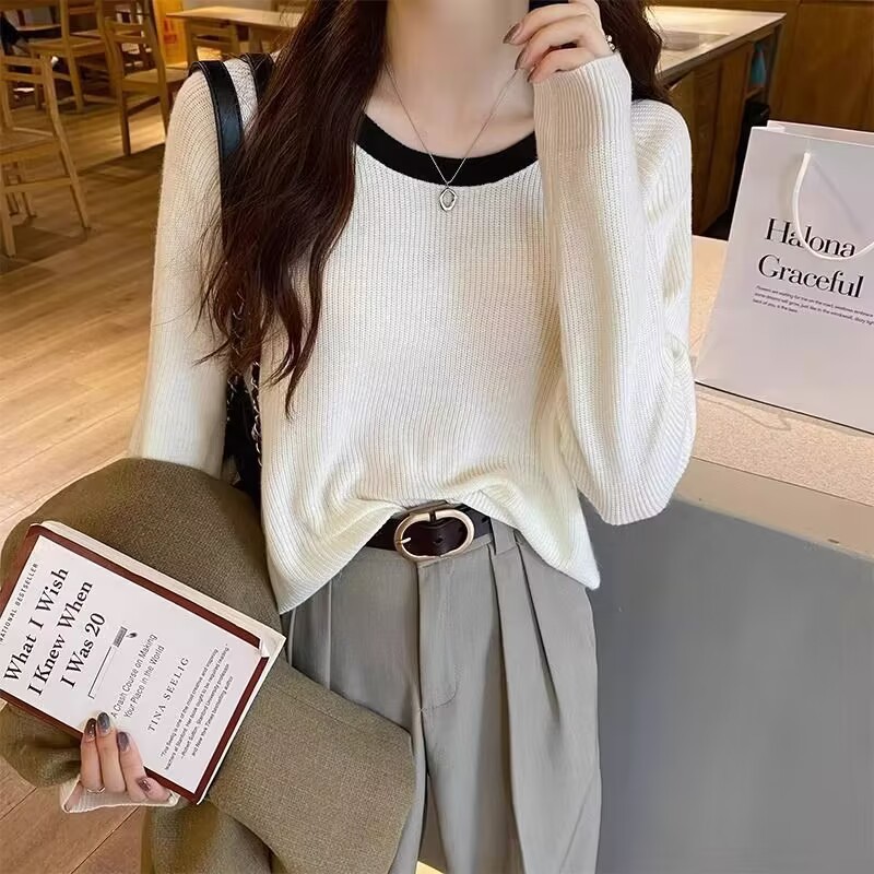 베이스 셔츠 여성의 2023 새로운 가을 긴팔 얇은 내부 니트 스웨터 가을과 겨울 고급 스웨터 대비 탑스토어 가기
