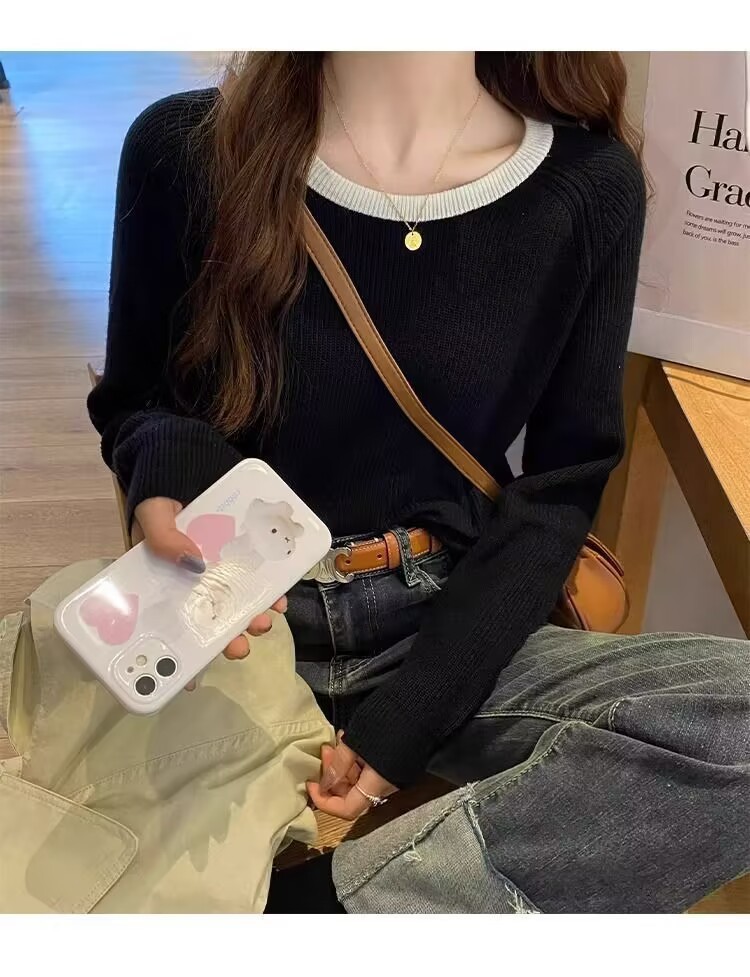 베이스 셔츠 여성의 2023 새로운 가을 긴팔 얇은 내부 니트 스웨터 가을과 겨울 고급 스웨터 대비 탑