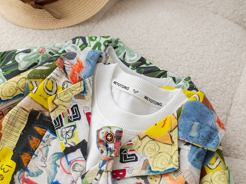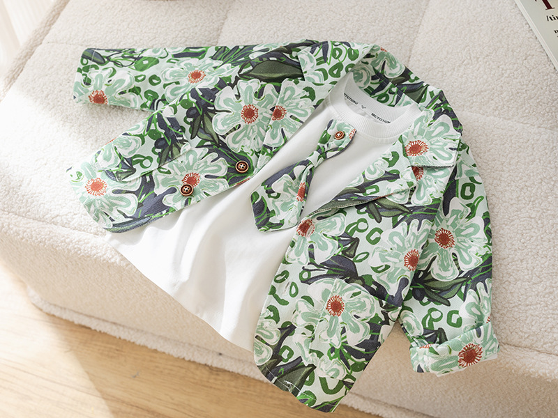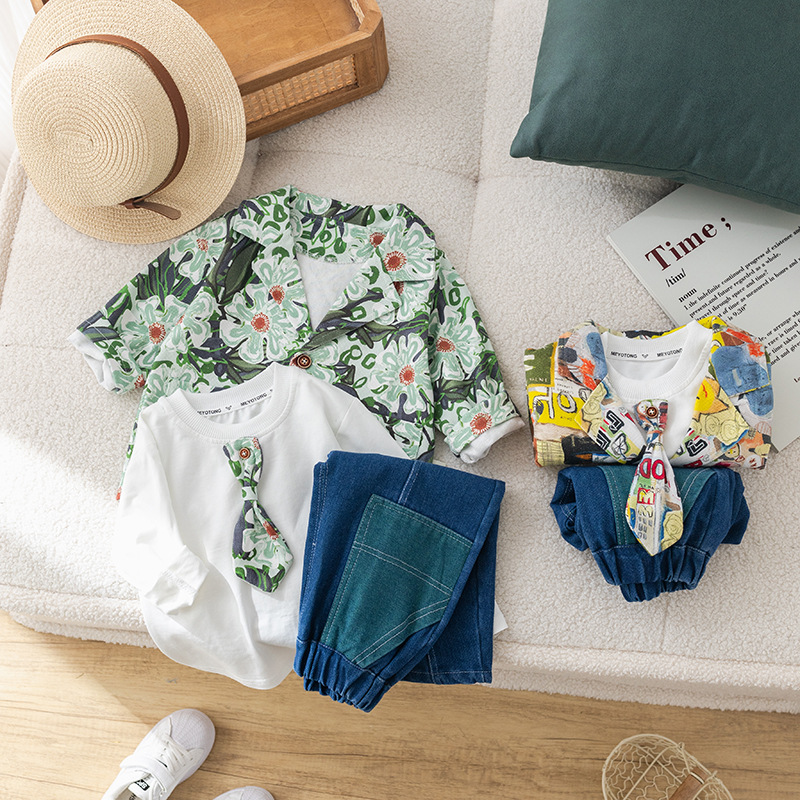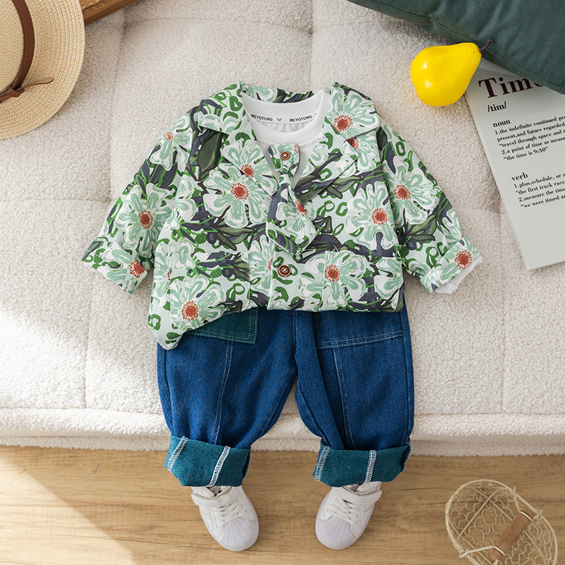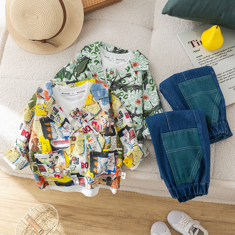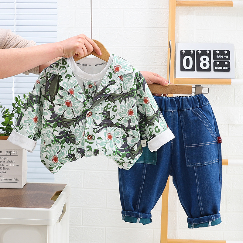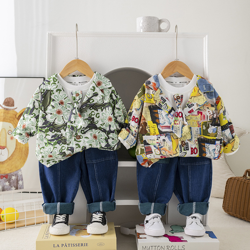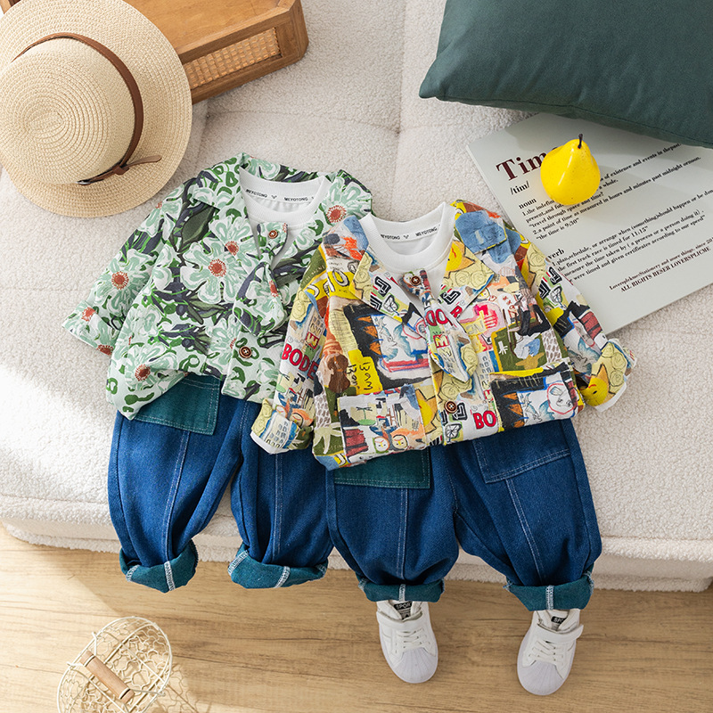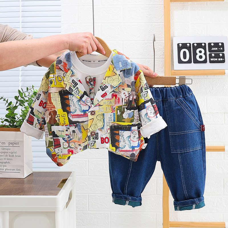 어린이 봄 꽃 세트 3 조각 세트 공장 도매 소년 영어 편지 인쇄 긴 소매 세트 재킷 패션스토어 가기