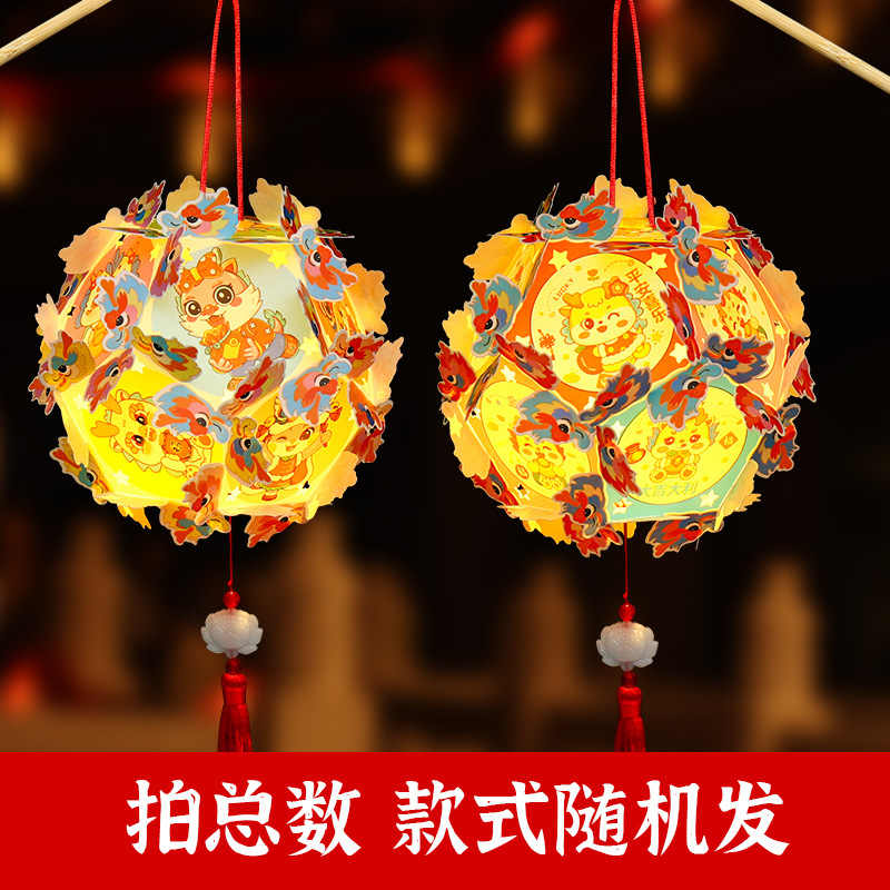 새 2024 드래곤 년 랜턴 수제 DIY 소재 패키지 어린이 휴대용 빛나는 새해 랜턴 축제 새해 랜턴