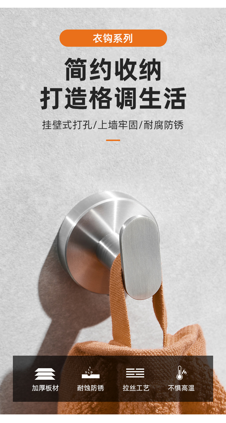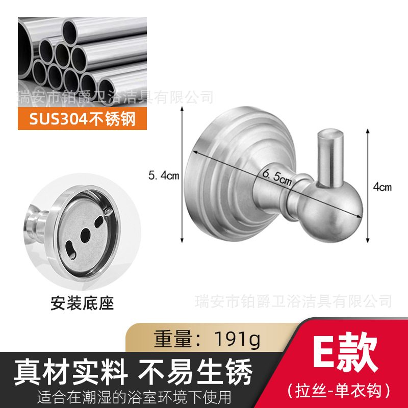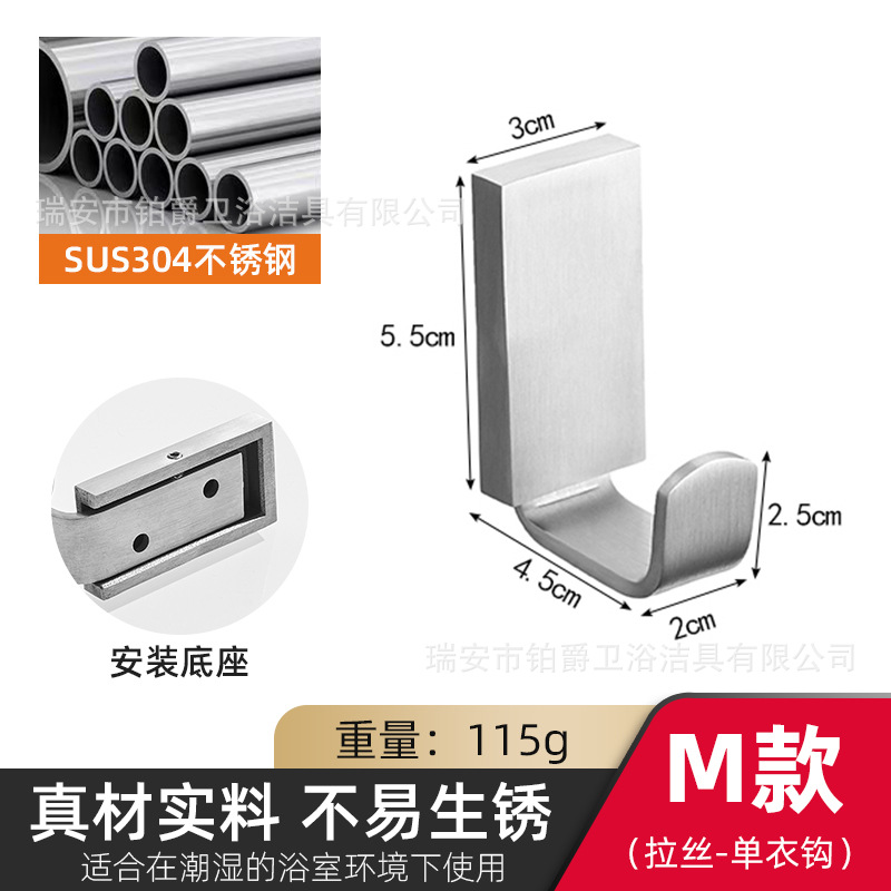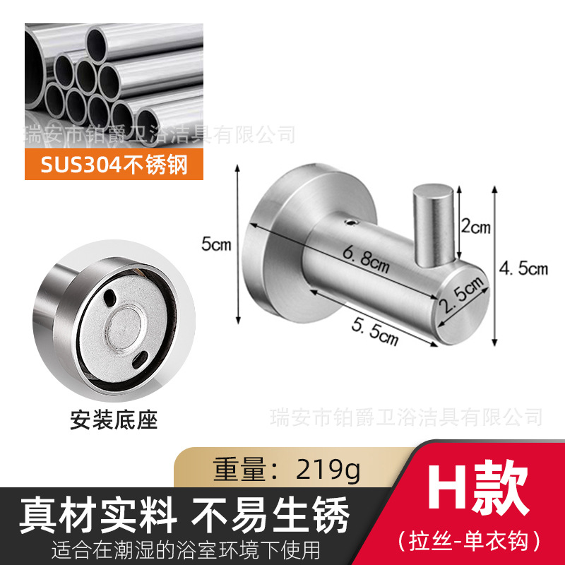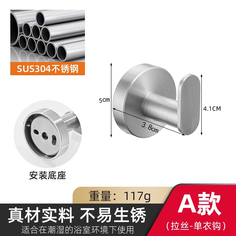 304 스테인레스 스틸 의류 후크 욕실 호텔 구멍이 뚫린 단일 후크 코트 후크 욕실 벽 수건 후크