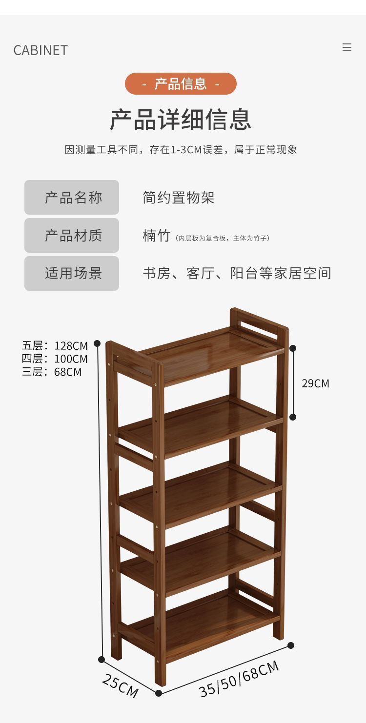 다층 보관 선반 바닥 간단한 대나무 주방 거실 벽 책 용품 잡화 스낵 보관 랙