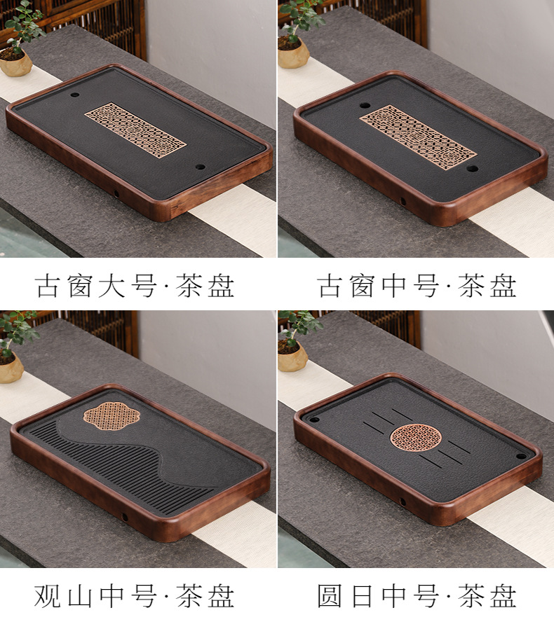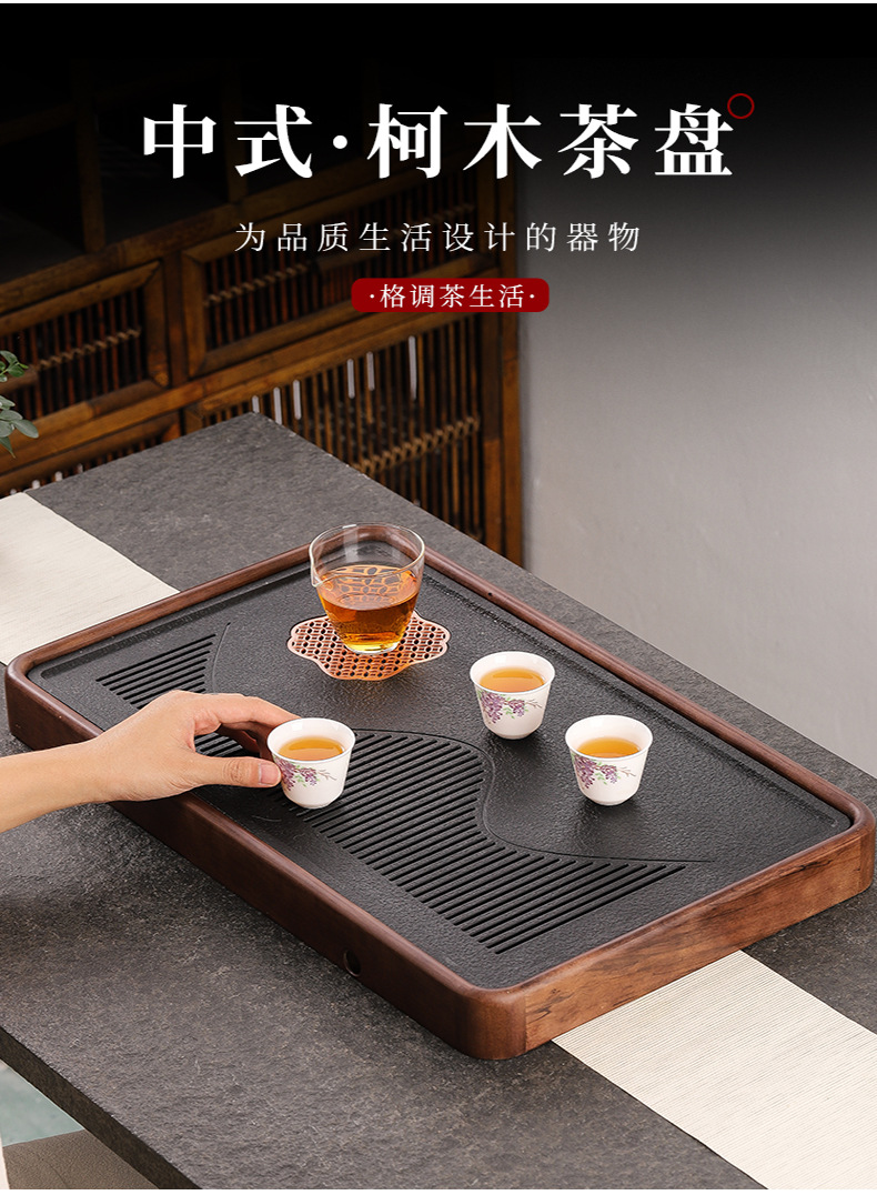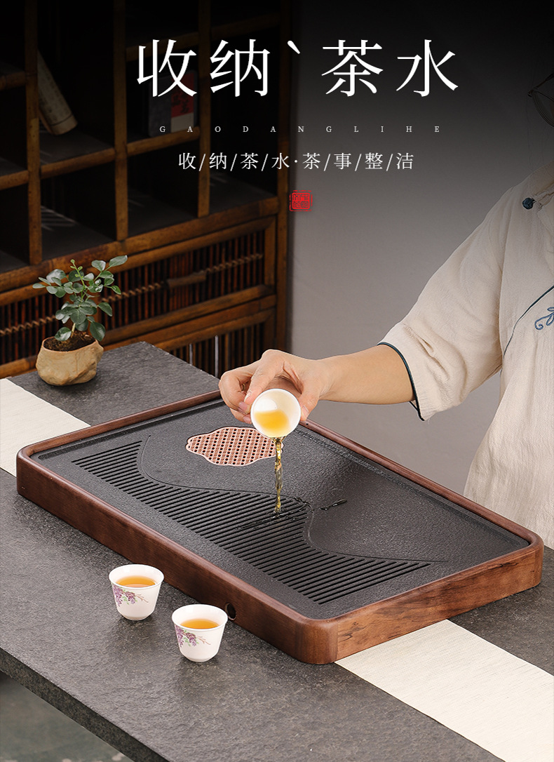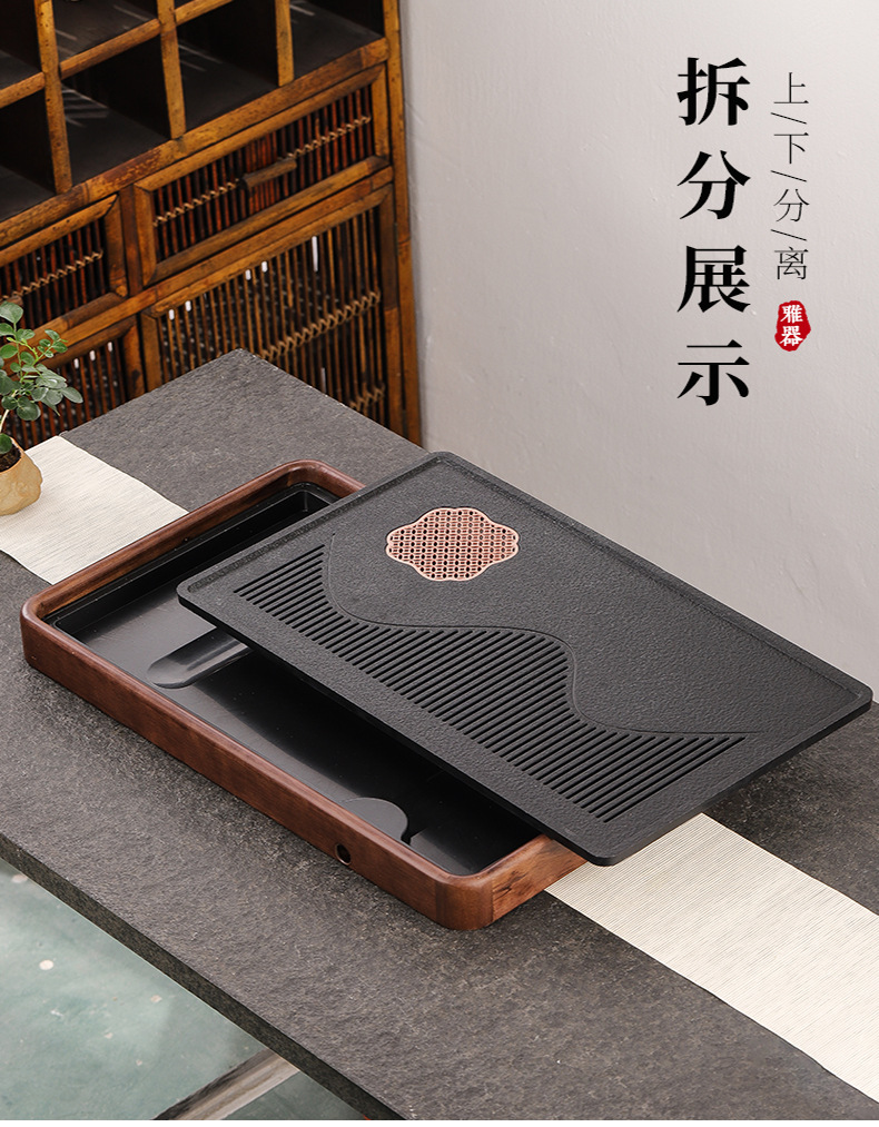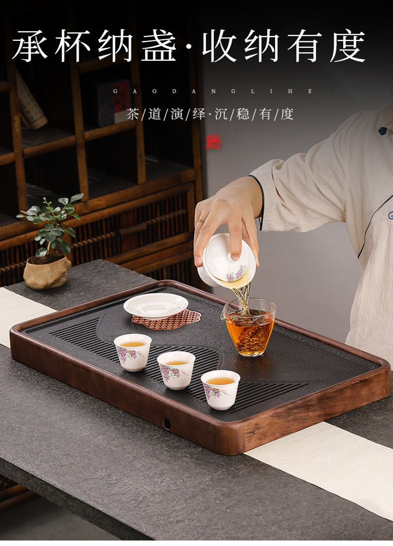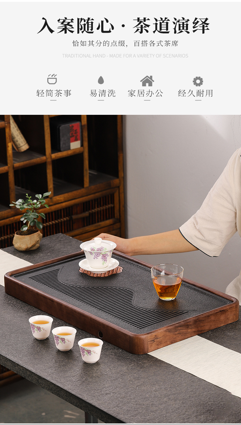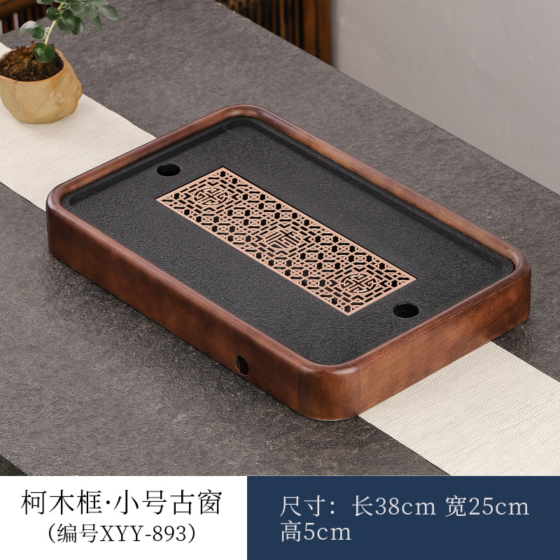 새로운 중국 스타일의 나무 차 트레이 가정용 간단한 저장 이중 사용 직사각형 단단한 나무 차 트레이 모방 wujinshi 마른 거품 테이블