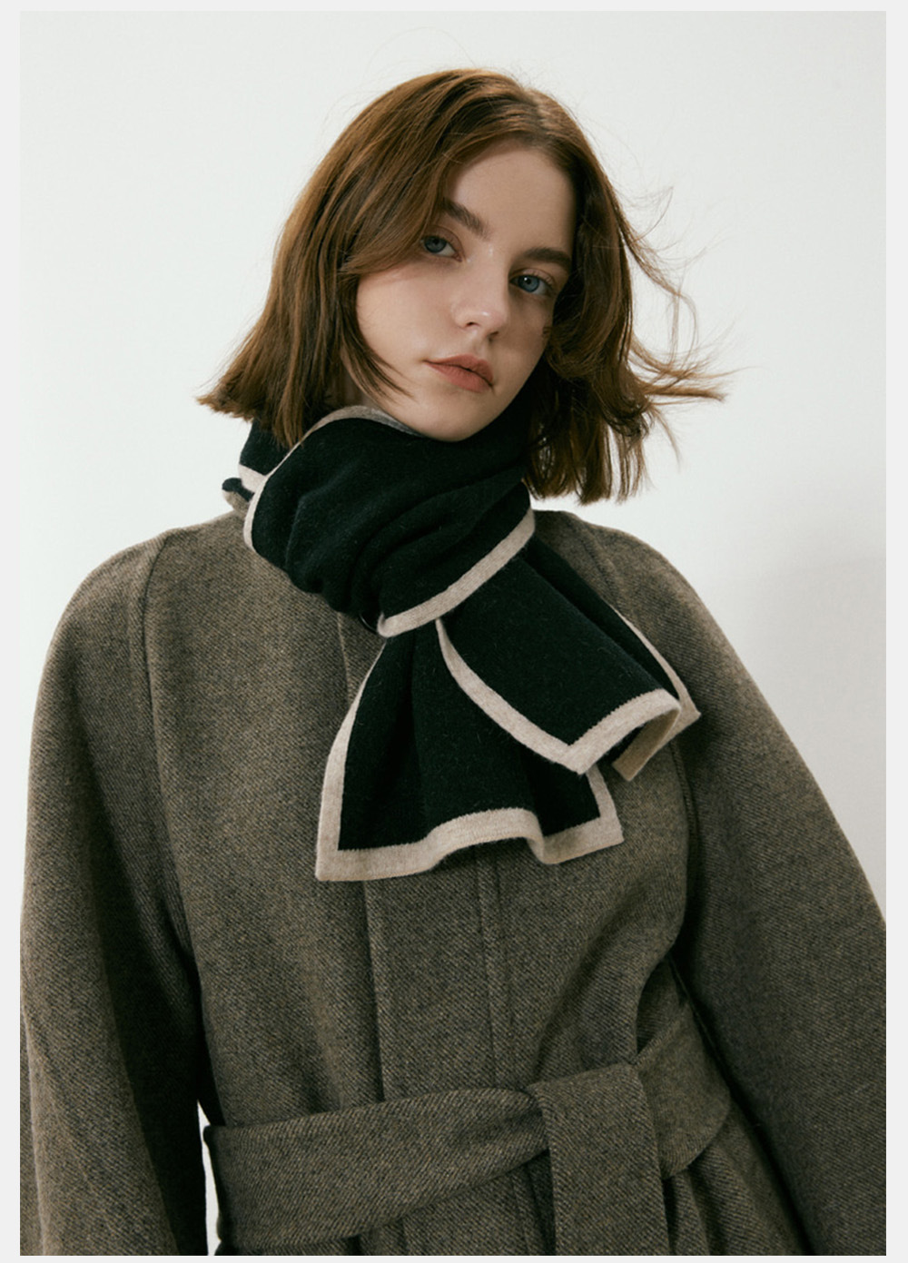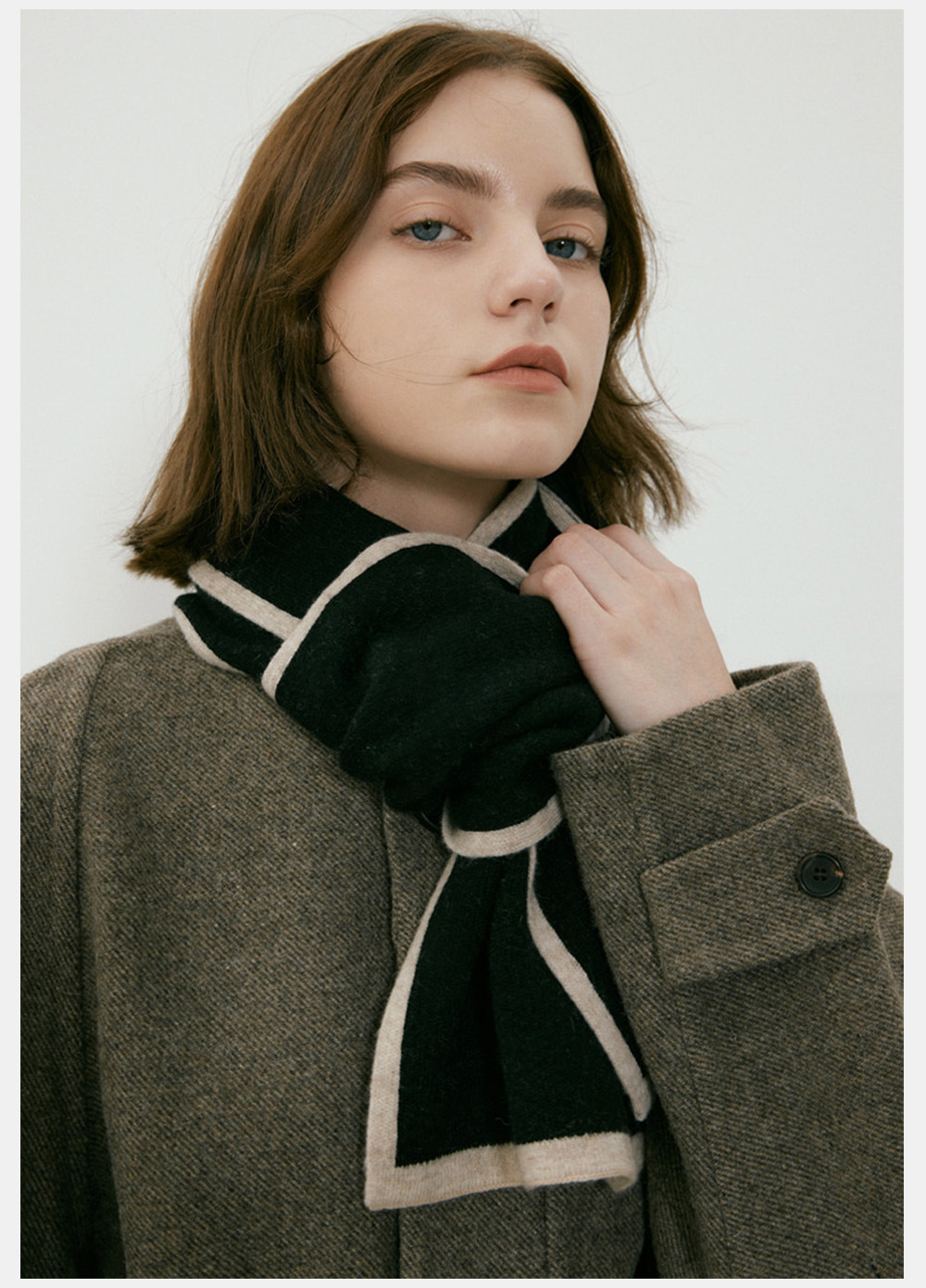 한국 디자이너의 고급스러운 배색 니트 따뜻한 스카프, 여성용 겨울용 부드러운 스몰 스카프, 우아한 스타일스토어 가기