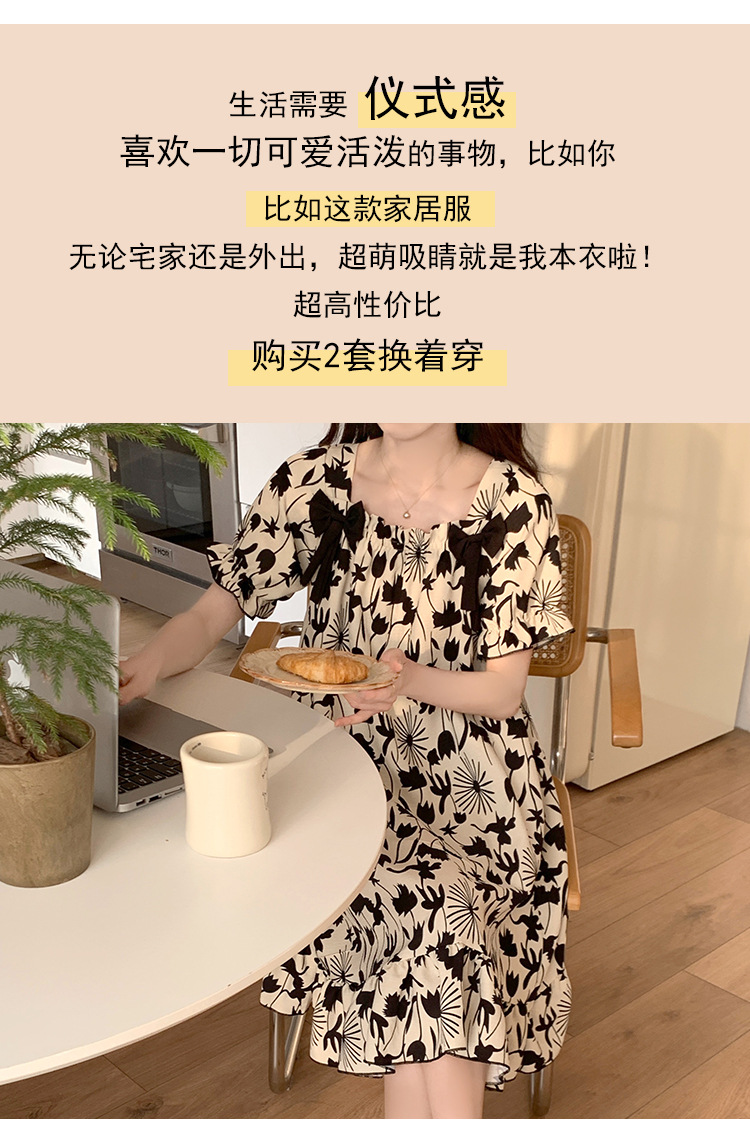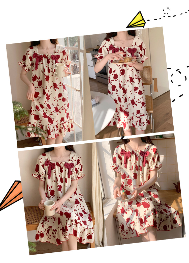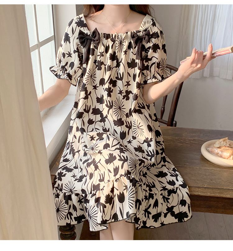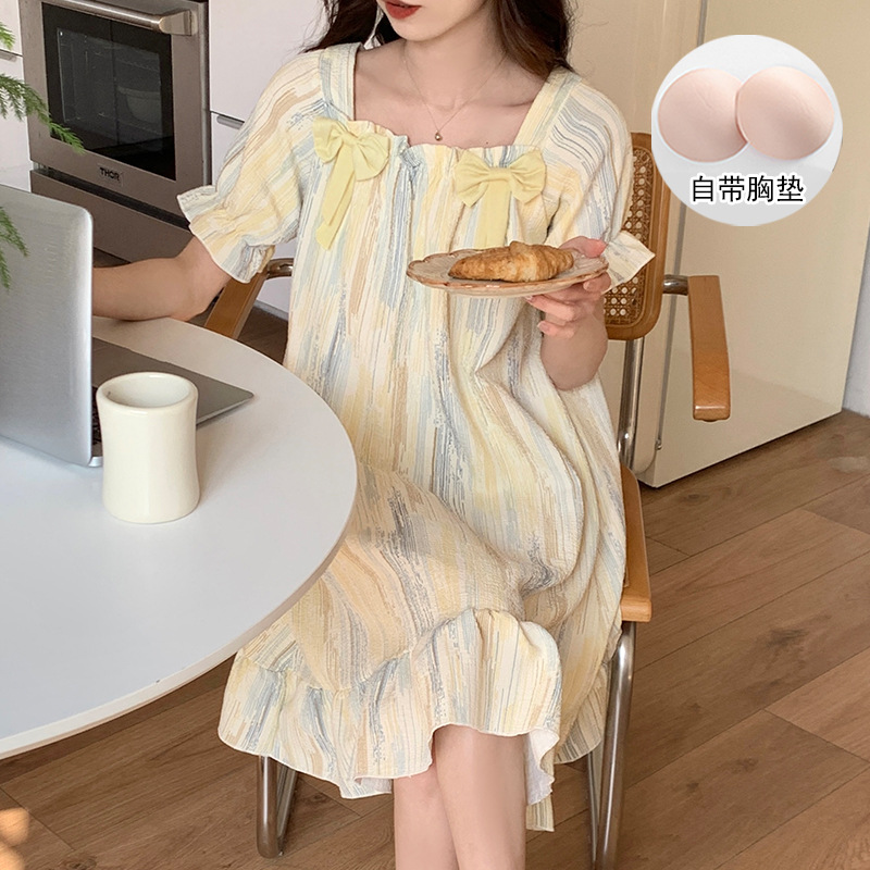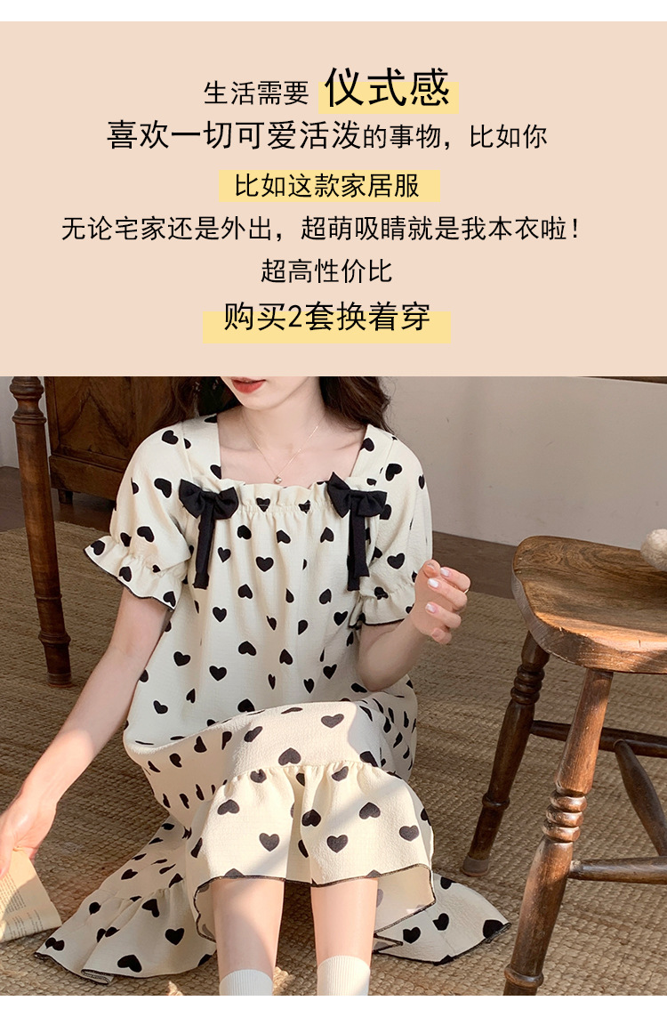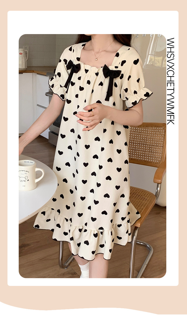2024 새로운 잠옷 여성 여름 반팔 미디 원피스 공주 스타일 느슨한 거품 크레이프 홈 착용 공장 도매스토어 가기