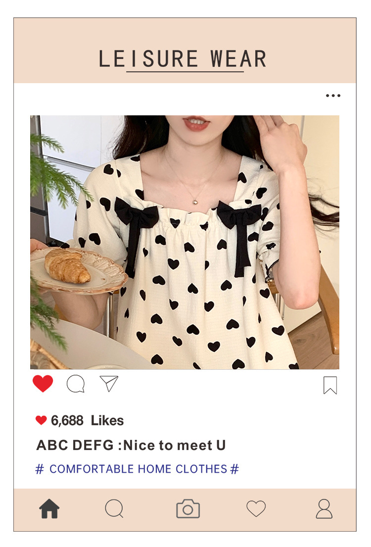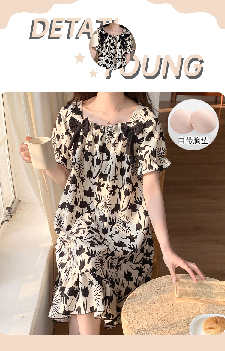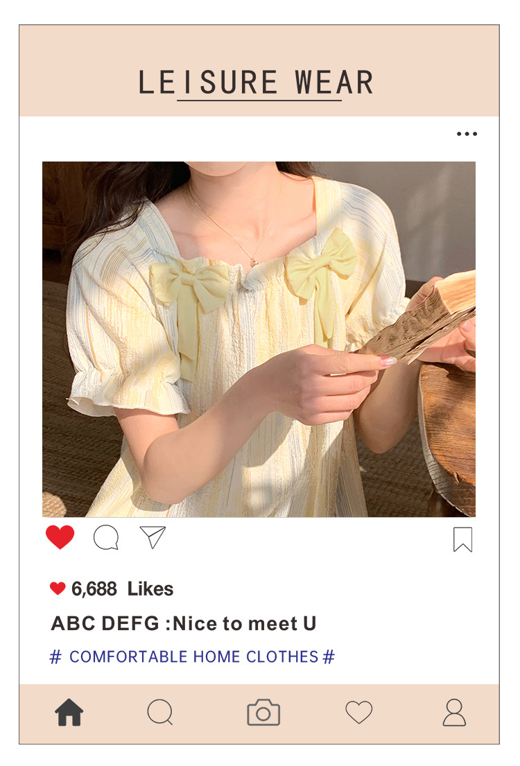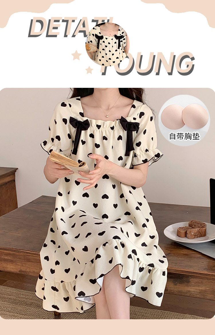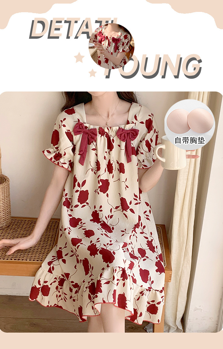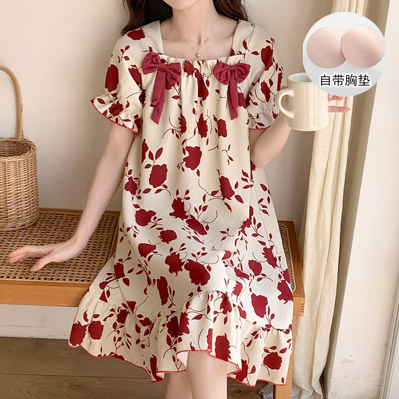 2024 새로운 잠옷 여성 여름 반팔 미디 원피스 공주 스타일 느슨한 거품 크레이프 홈 착용 공장 도매스토어 가기