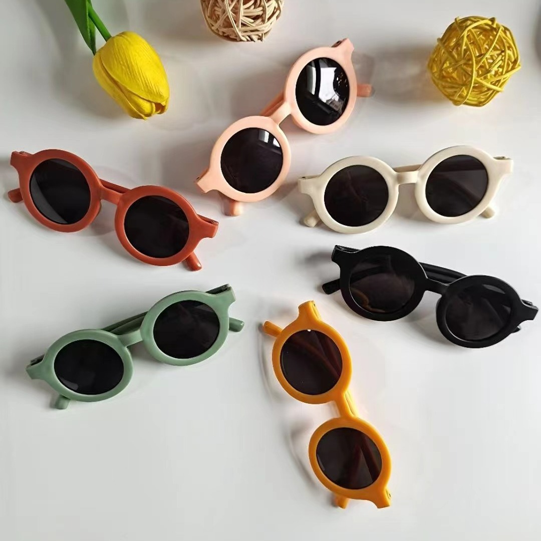 2023ins 인기있는 어린이 선글라스 레트로 소년 소녀 어린이 선글라스 재고 아기 원형 프레임 선글라스