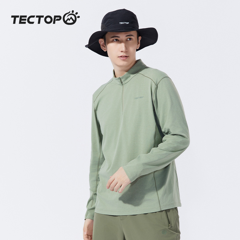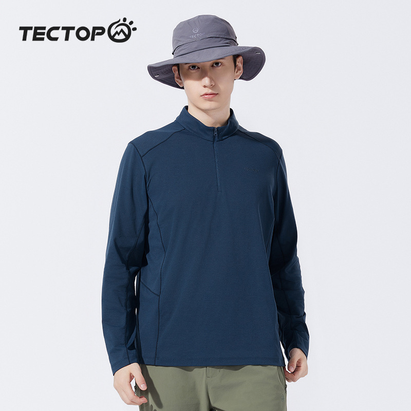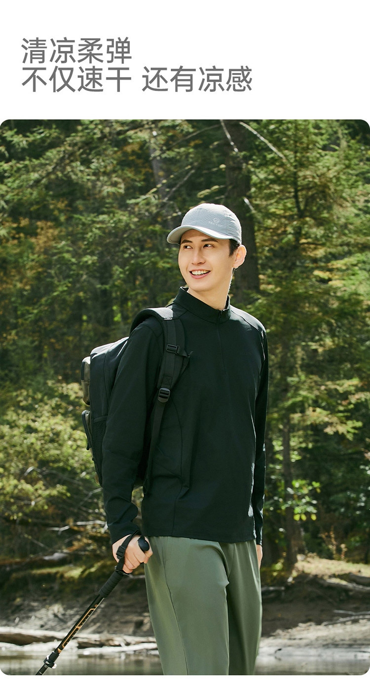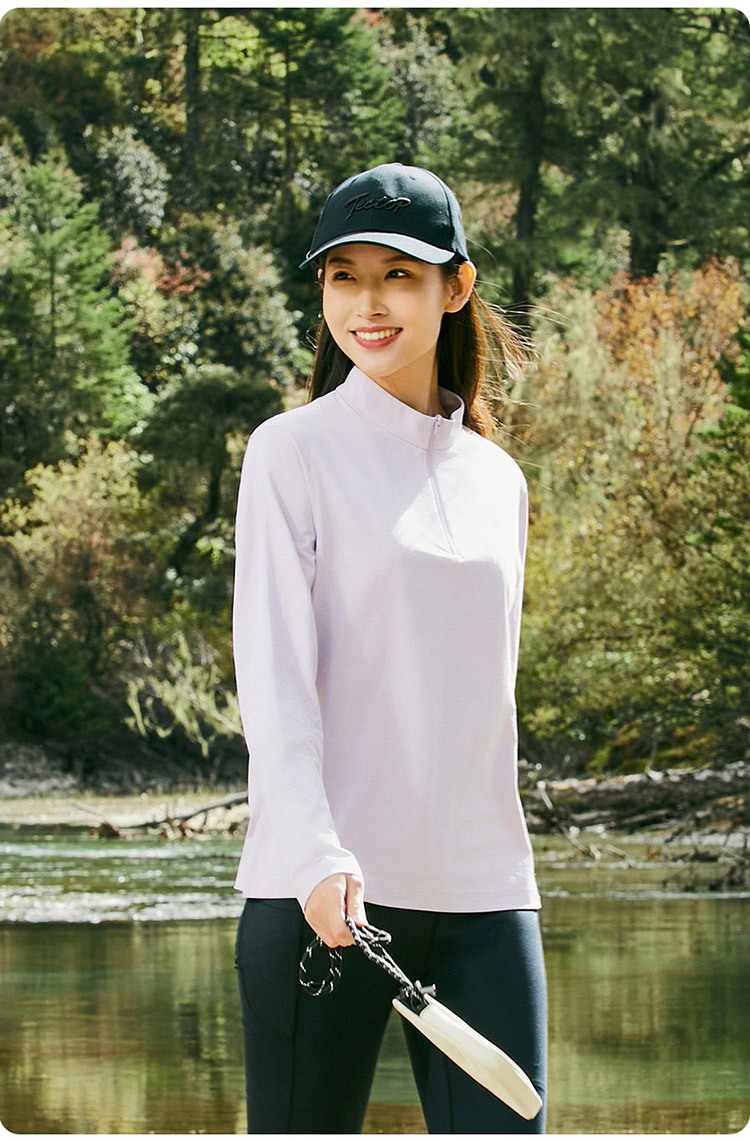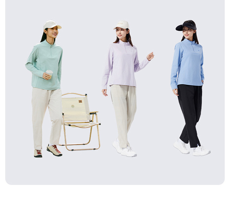 2025 봄과 여름 새로운 야외 커플 스타일 속건성 긴팔 티셔츠 스탠드 칼라 아이스 느낌 속건성 의류 여성용 속건성 티셔츠 남성용스토어 가기