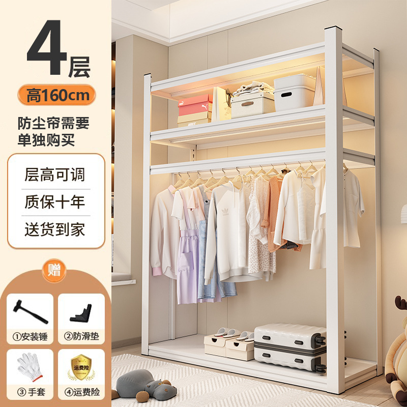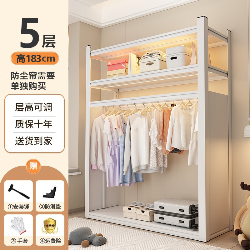 아파트 임대 룸 다층 보관 랙 간단한 옷장 조립 옷장 기숙사 선반 오픈 행거스토어 가기
