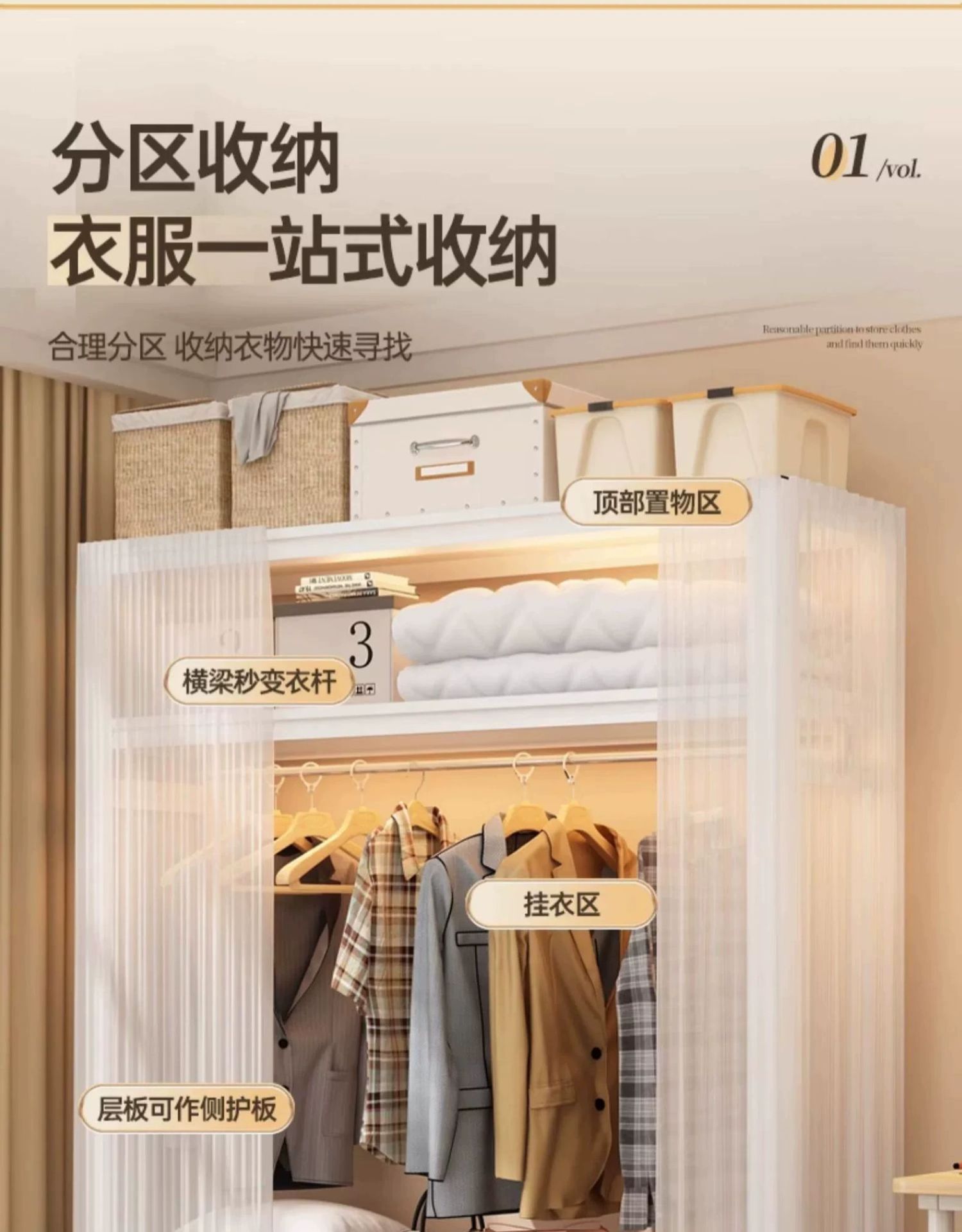 아파트 임대 룸 다층 보관 랙 간단한 옷장 조립 옷장 기숙사 선반 오픈 행거