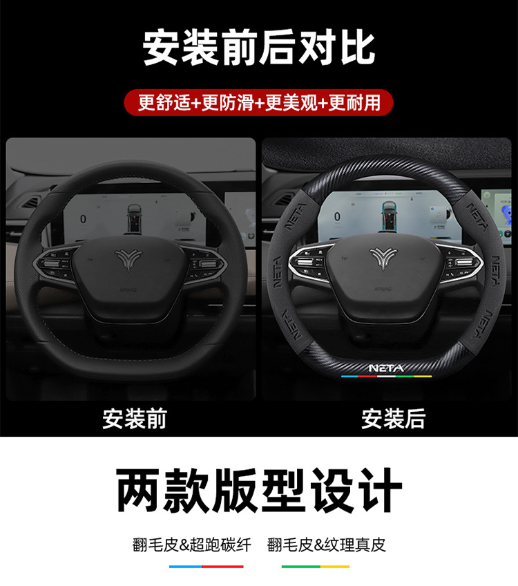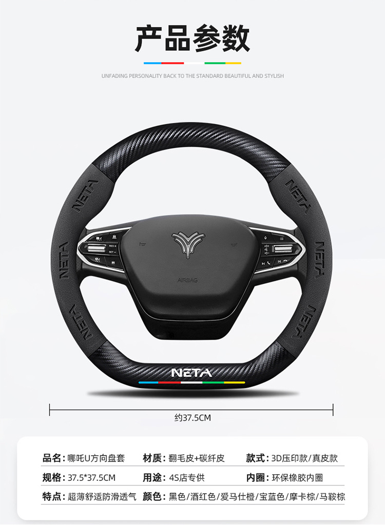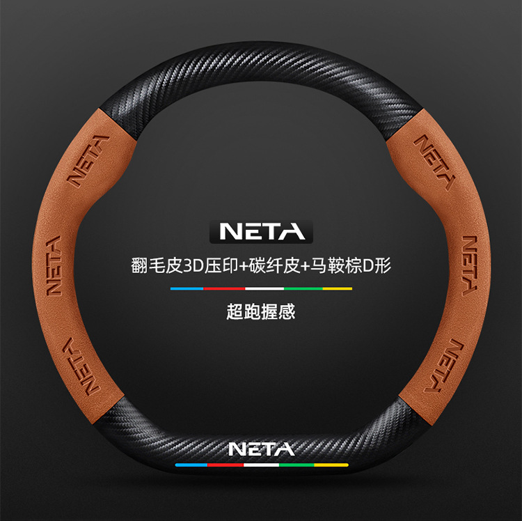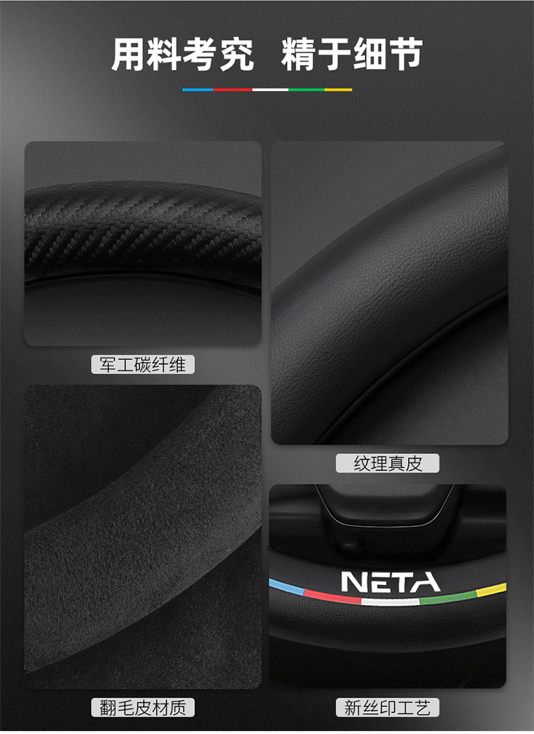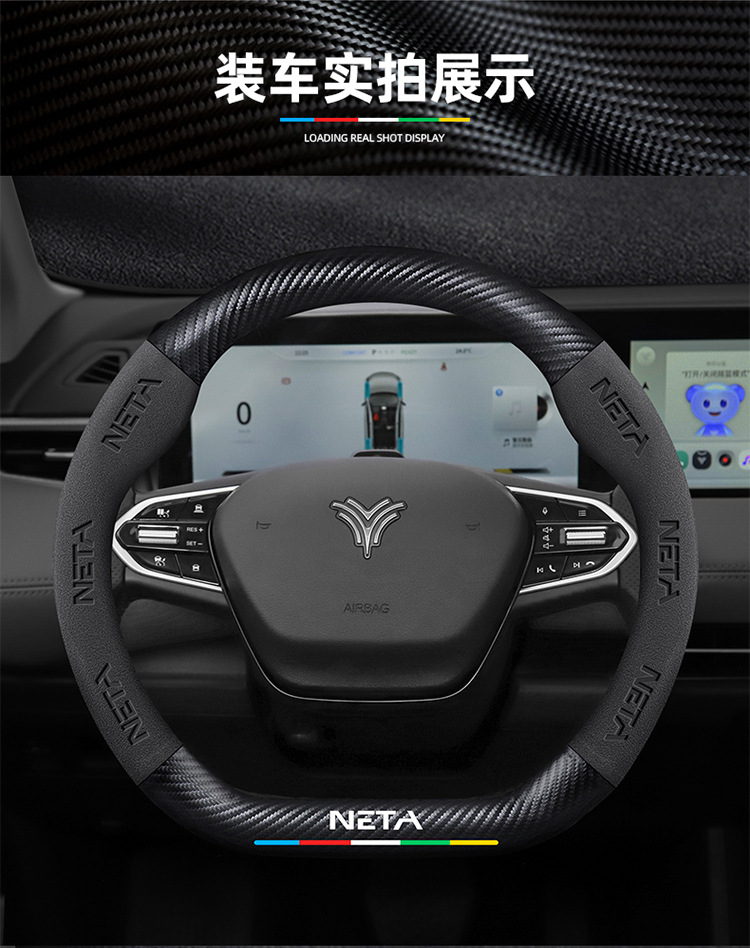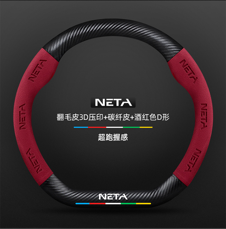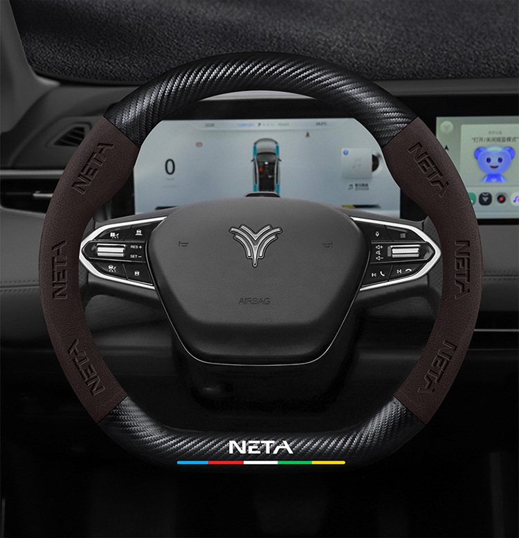 Nezha u 스티어링 휠 커버 20-22 특수 폴로 겨울 탄소 섬유 가죽 스웨이드 초박형 남성 및 여성용 자동차 핸들 커버스토어 가기