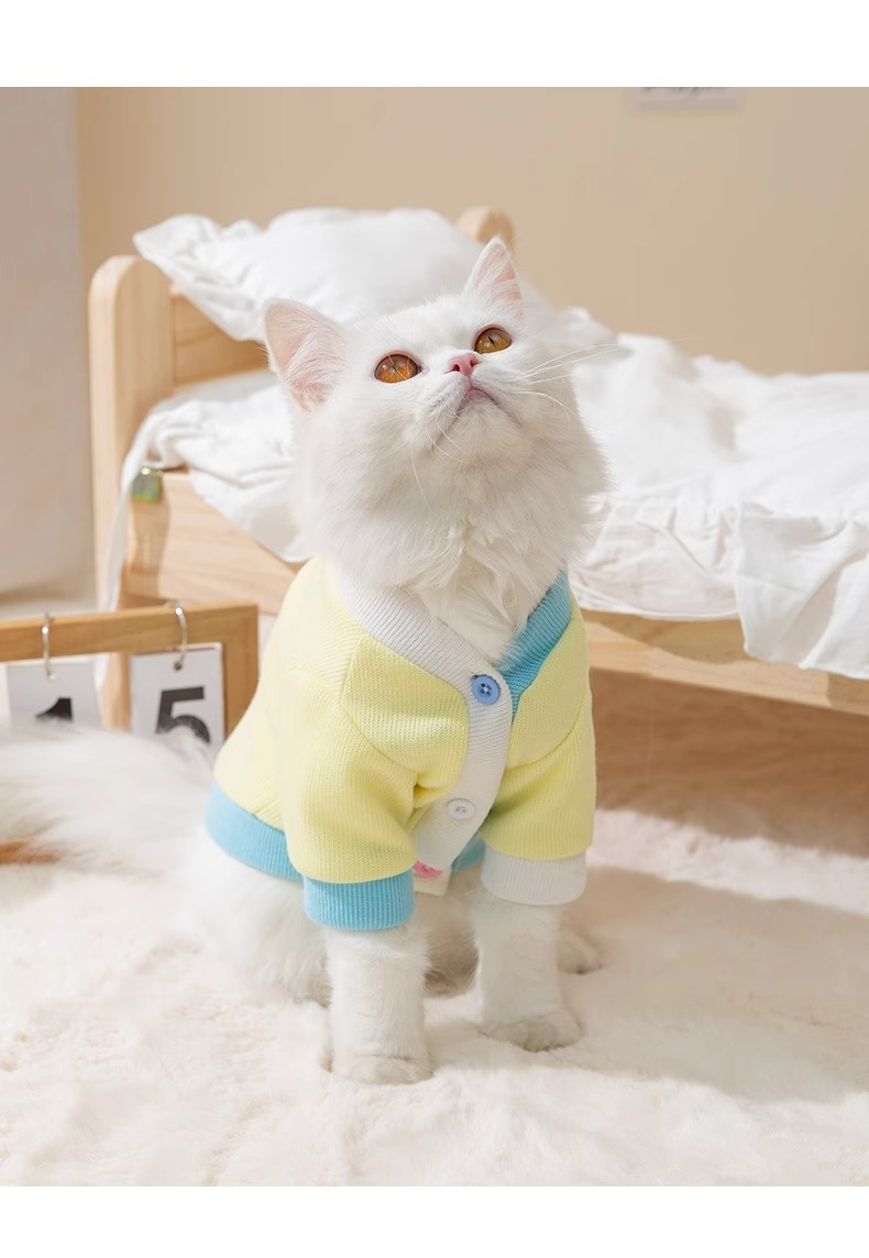 귀여운 개 대비 색상 니트 카디건 봄 따뜻한 시즌 귀여운 중간 및 작은 개 고양이 두 다리 옷 애완 동물 옷