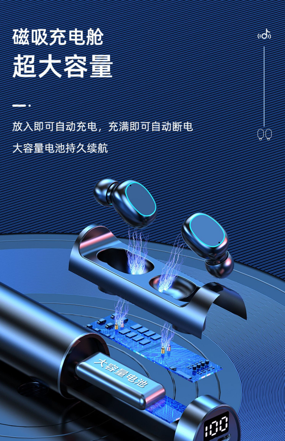 신형 개인 디자인 N21 무선 원통형 미니 스포츠형 인이어 블루투스 이어폰 TWS 크로스보더 LED 디지털 디스플레이