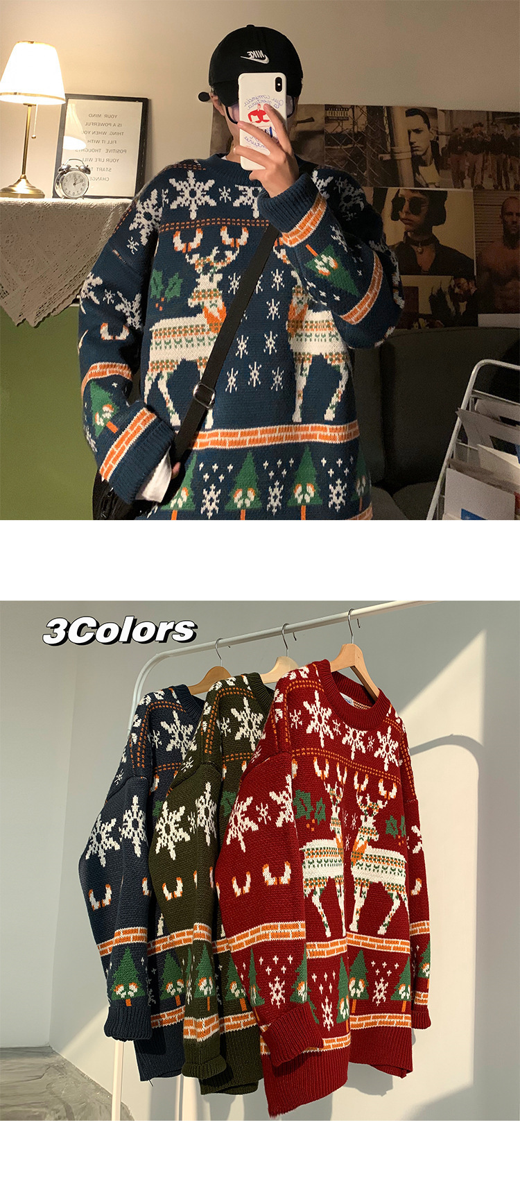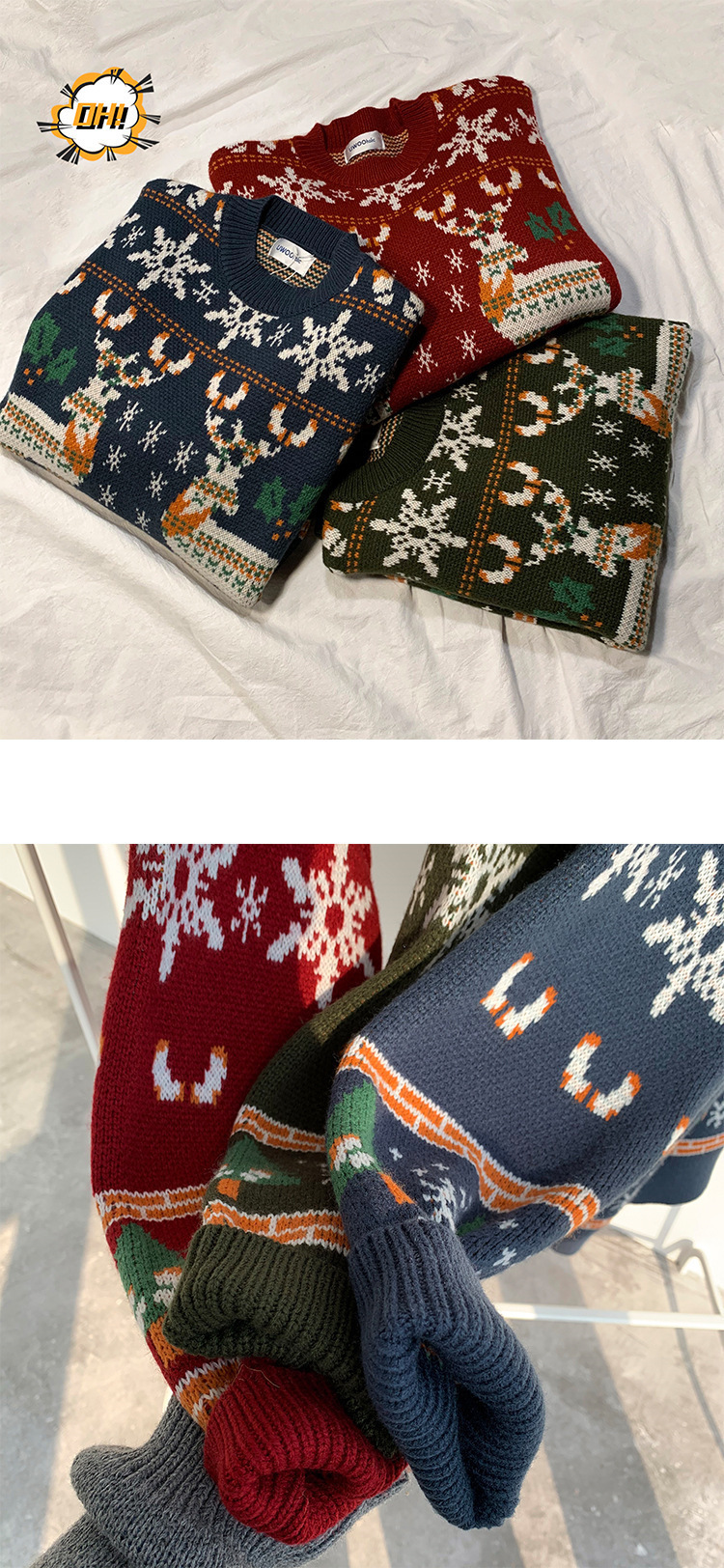겨울 커플 코트 홍콩 스타일 느슨한 게으른 크리스마스 스웨터, 스웨터 소년 두껍게