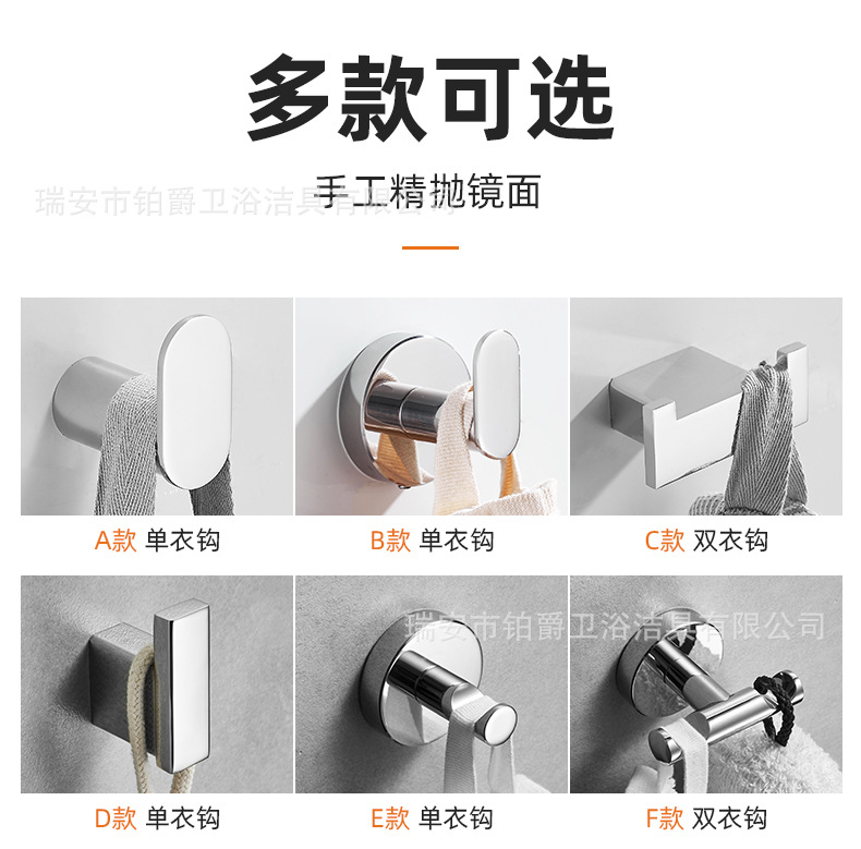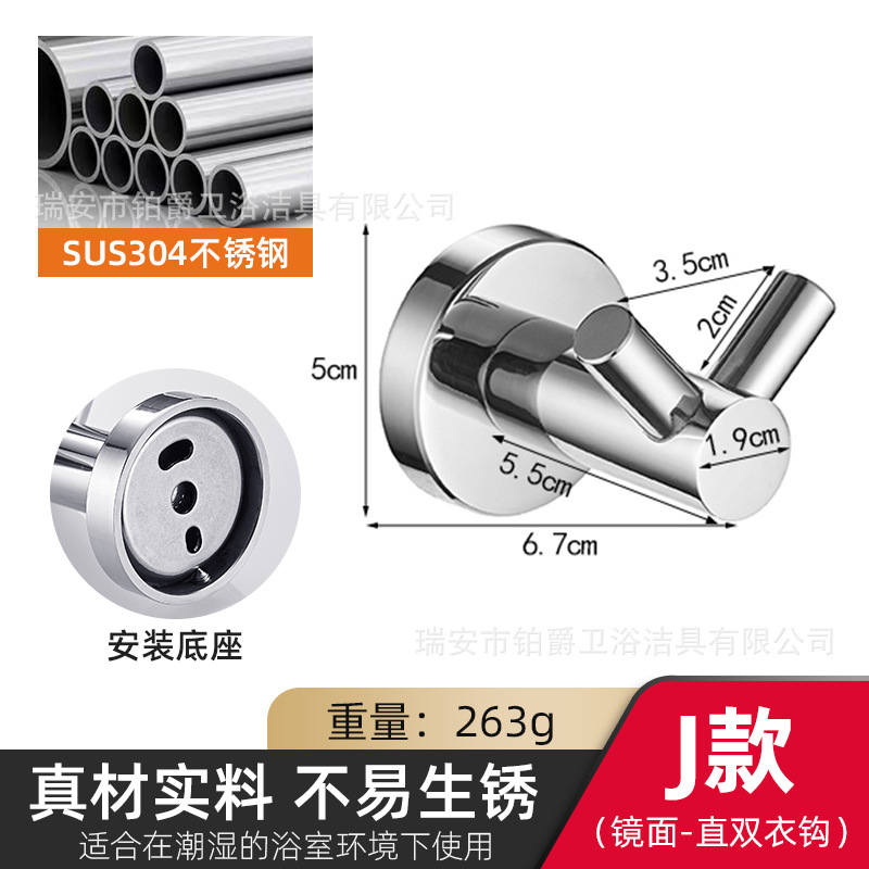 소스 공장 직접 옷 후크 벽걸이 가구 304 스테인레스 스틸 코트 후크 무료 호텔 욕실 더블 후크