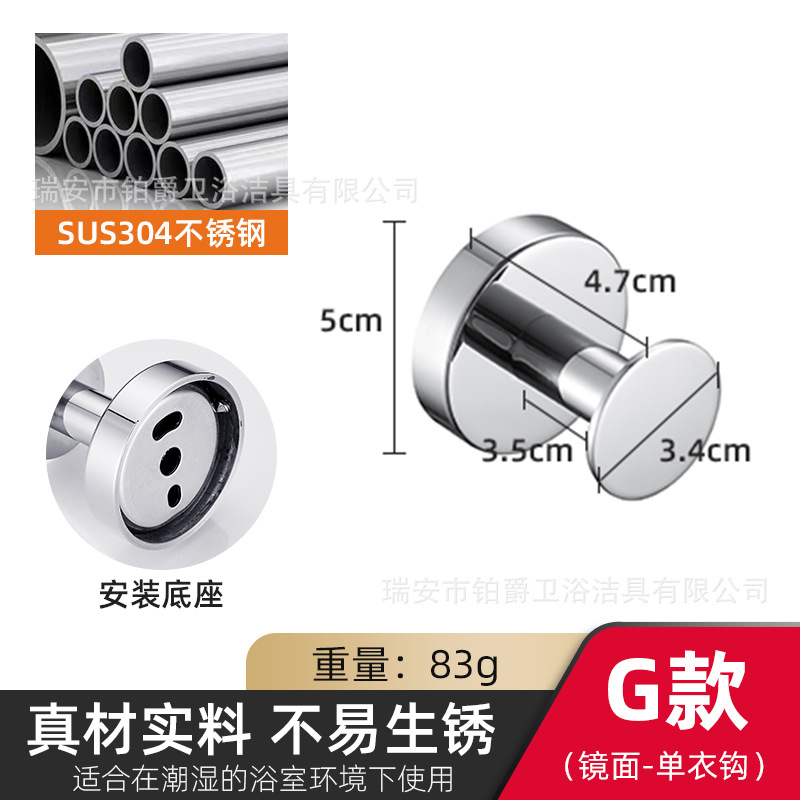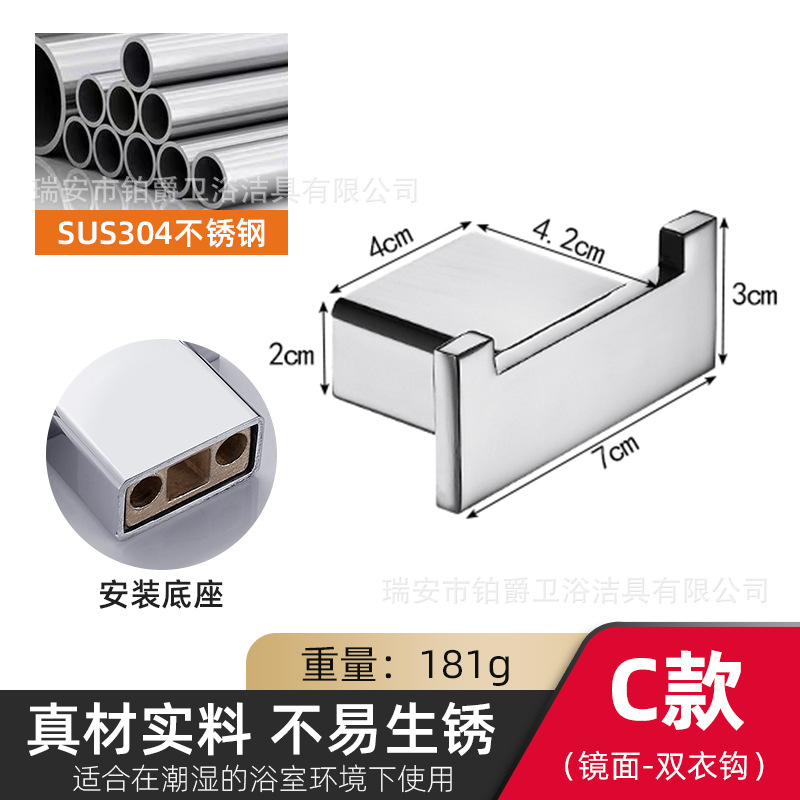 소스 공장 직접 옷 후크 벽걸이 가구 304 스테인레스 스틸 코트 후크 무료 호텔 욕실 더블 후크스토어 가기