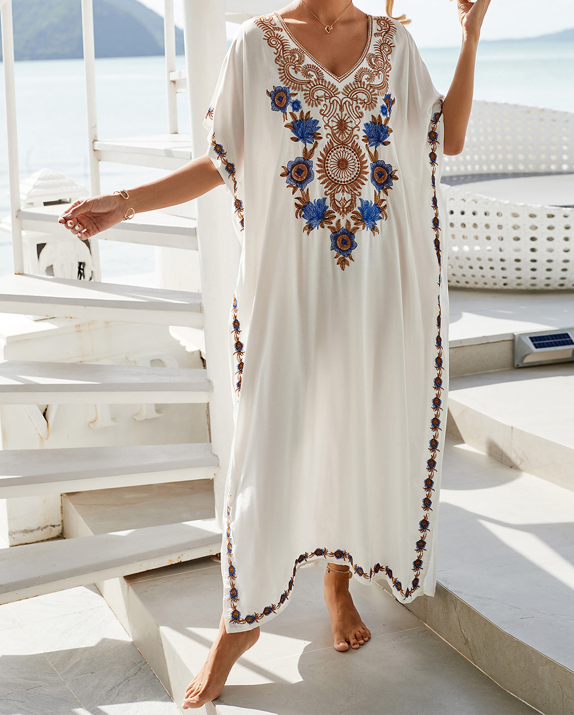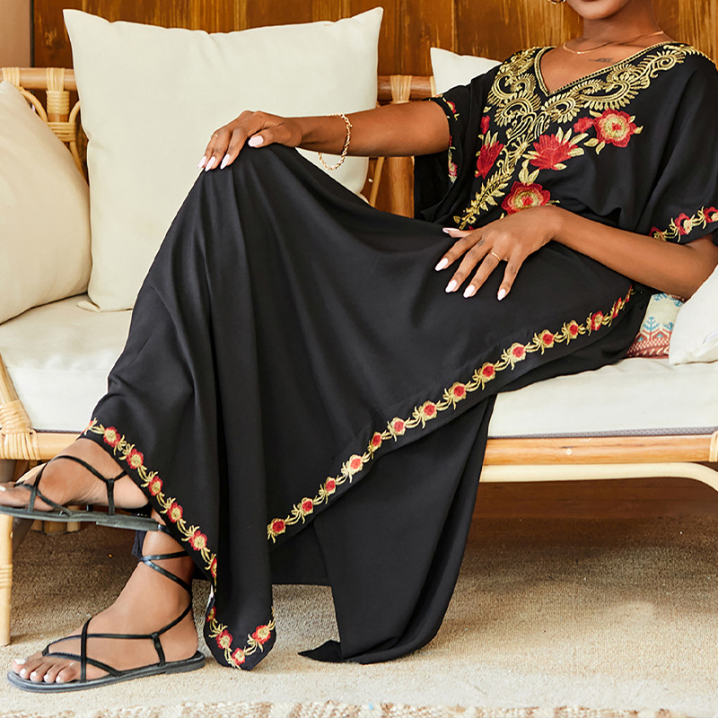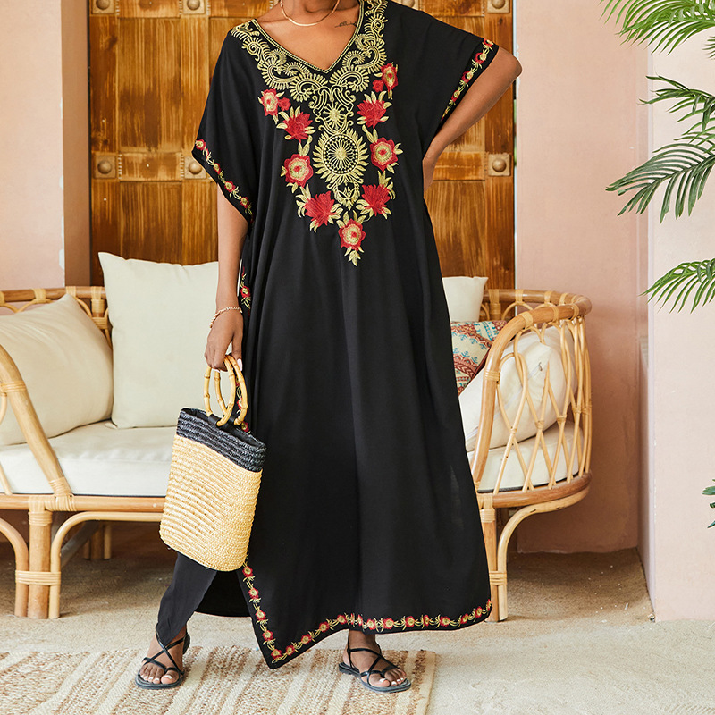 해변 블라우스 레이온 자수 휴가 가운 원피스 2 색 아마존 국경 성인 태양 보호 느슨한스토어 가기
